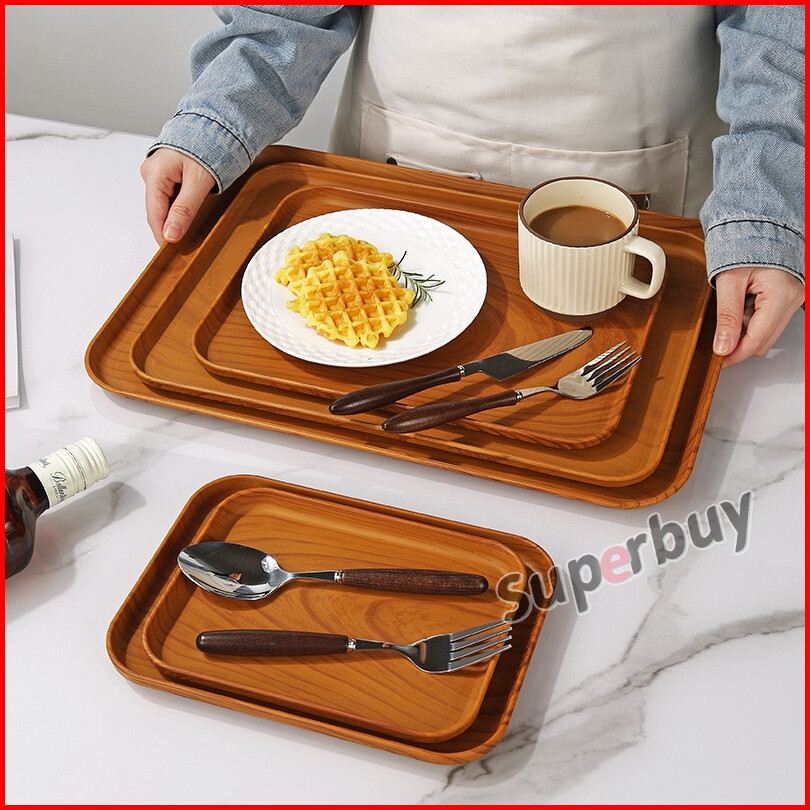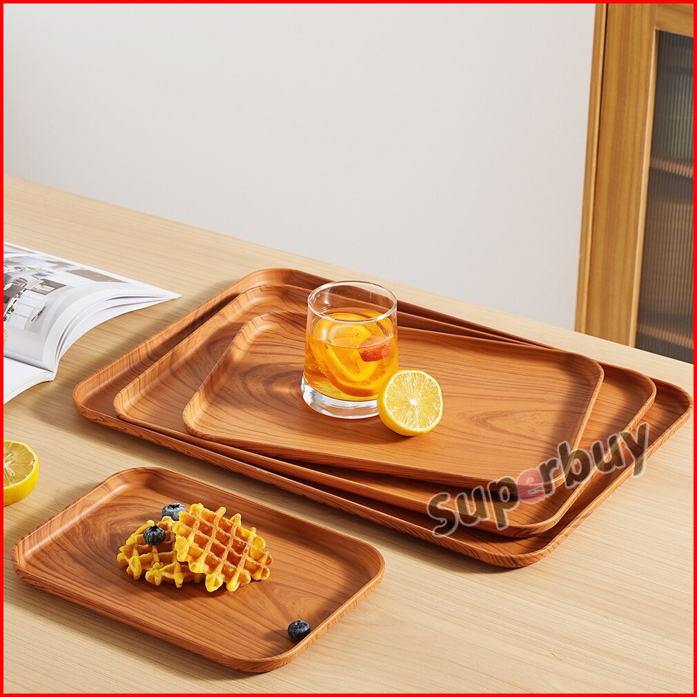 Nampan Saji Kotak Tray Plastik Pp Motif Kayu Makanan Minuman Aesthetic Multifungsi Elegan