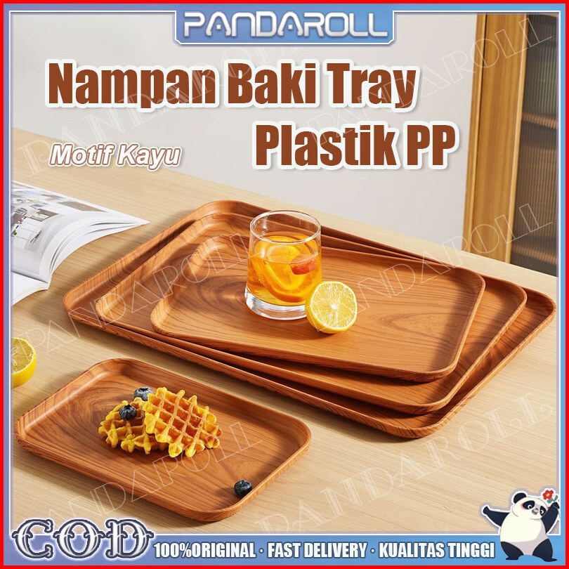 Panda Nampan Saji Kotak Baki Tray Plastik Pp Motif Kayu Makanan Minuman Aesthetic Multifungsi Restoran