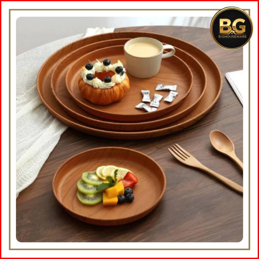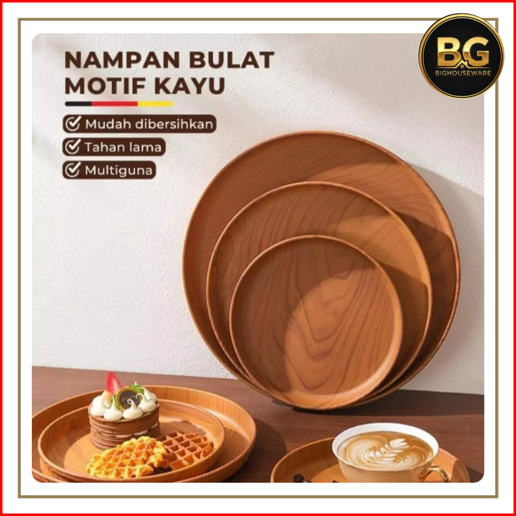 Bg - Nampan Bulat Plastik Motif Kayu Ukuran 26cm 28cm 38cm Nampan Anti Slip Tidak Licin Multifungsi