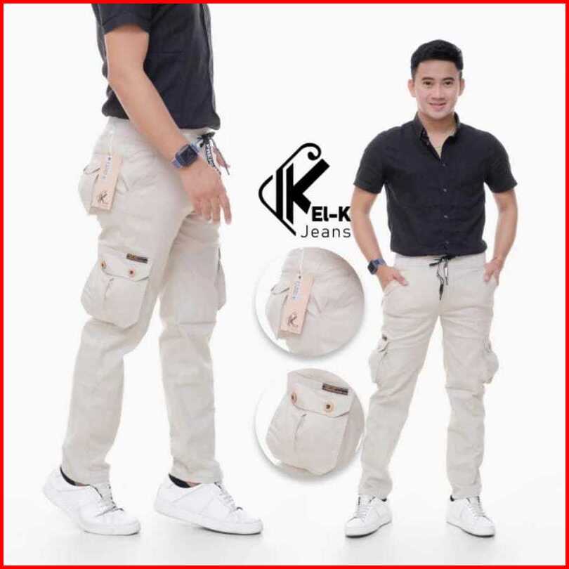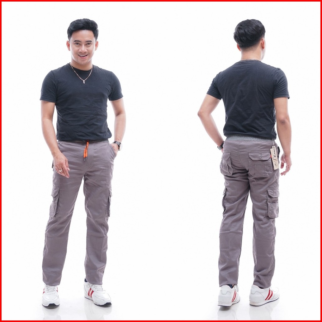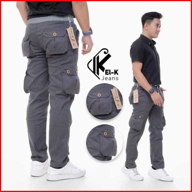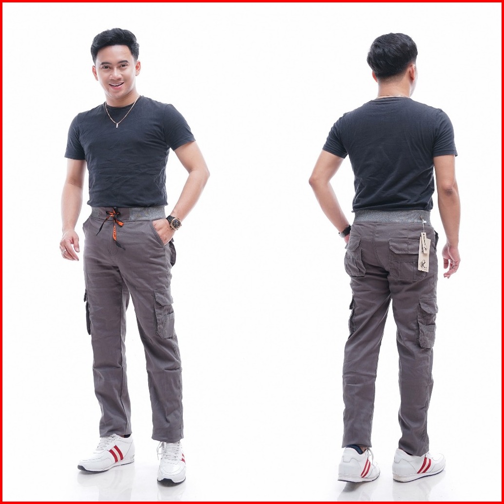 Celana Cargo Panjang Pria Pinggang Karet Jumbo Melar Nyaman