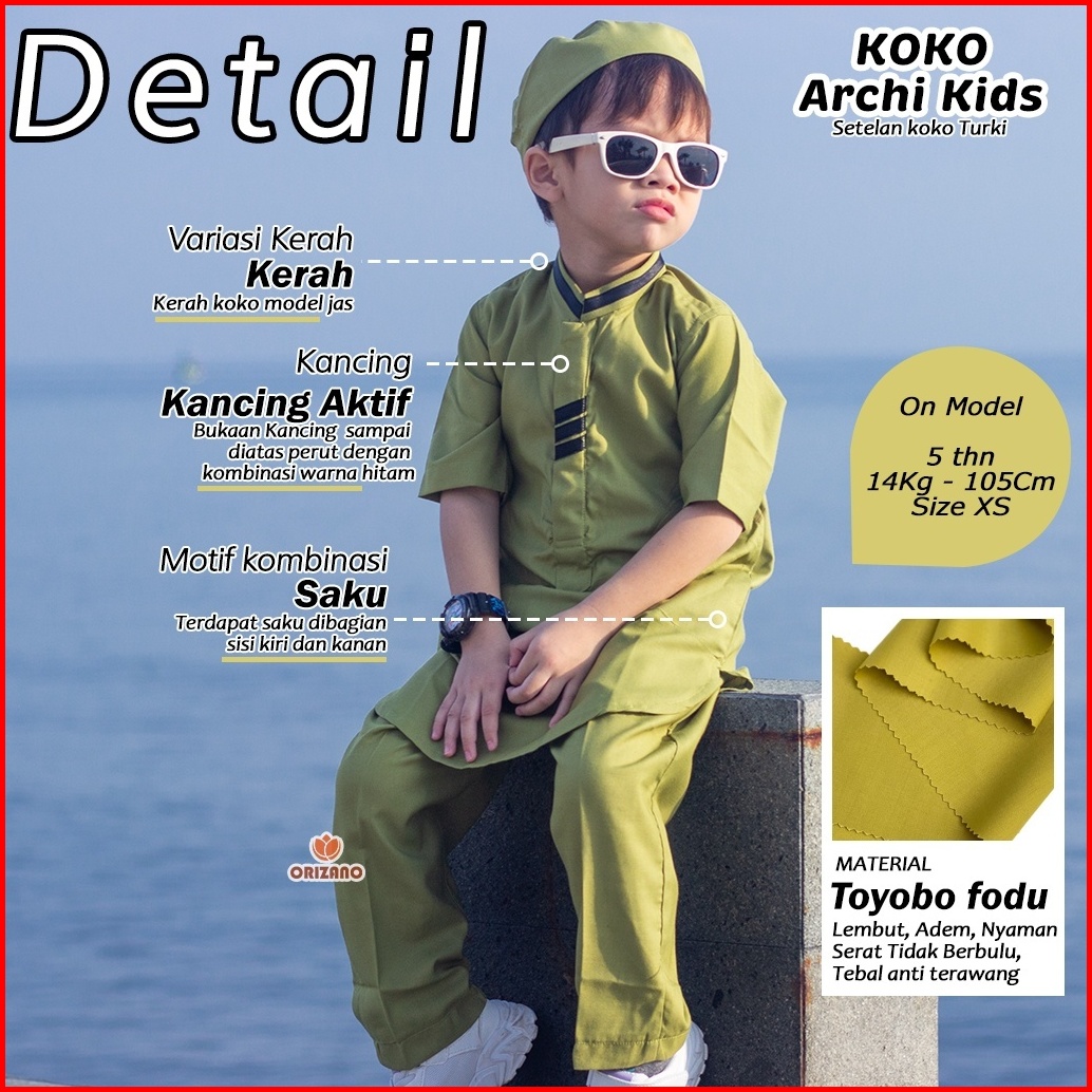 Baju Koko Bayi Muslim Anak Laki Laki Cowok Archi Raffi 0-6 Bulan 6-12 Bulan 1-4 Tahun