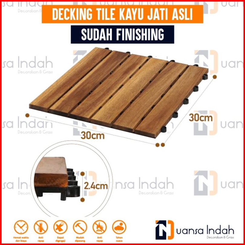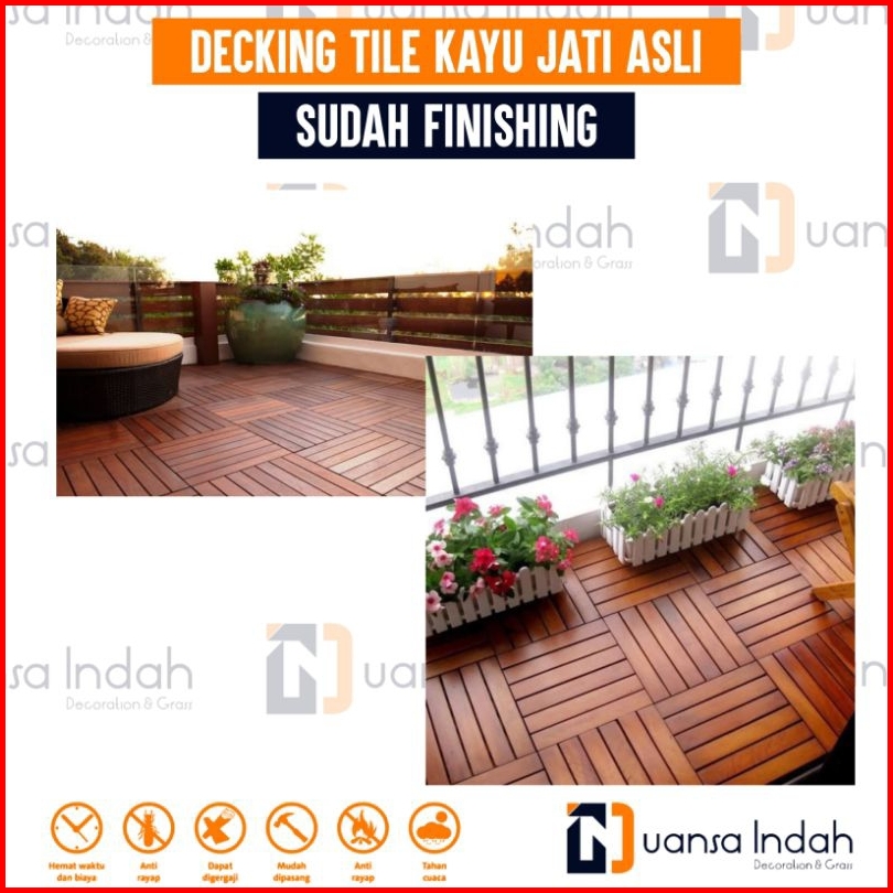 Paket 20 Pcs Decking Tile Kayu Jati Asli Finishing