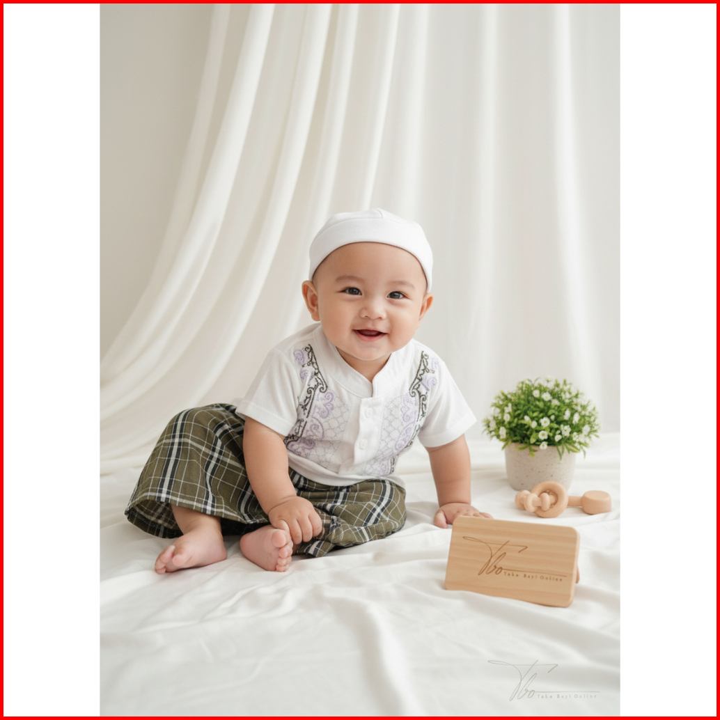Baju Koko Bayi Ozuka Setelan Sarung Dan Peci Sarkoci Akikah 0-6 Bulan 6-12 Bulan