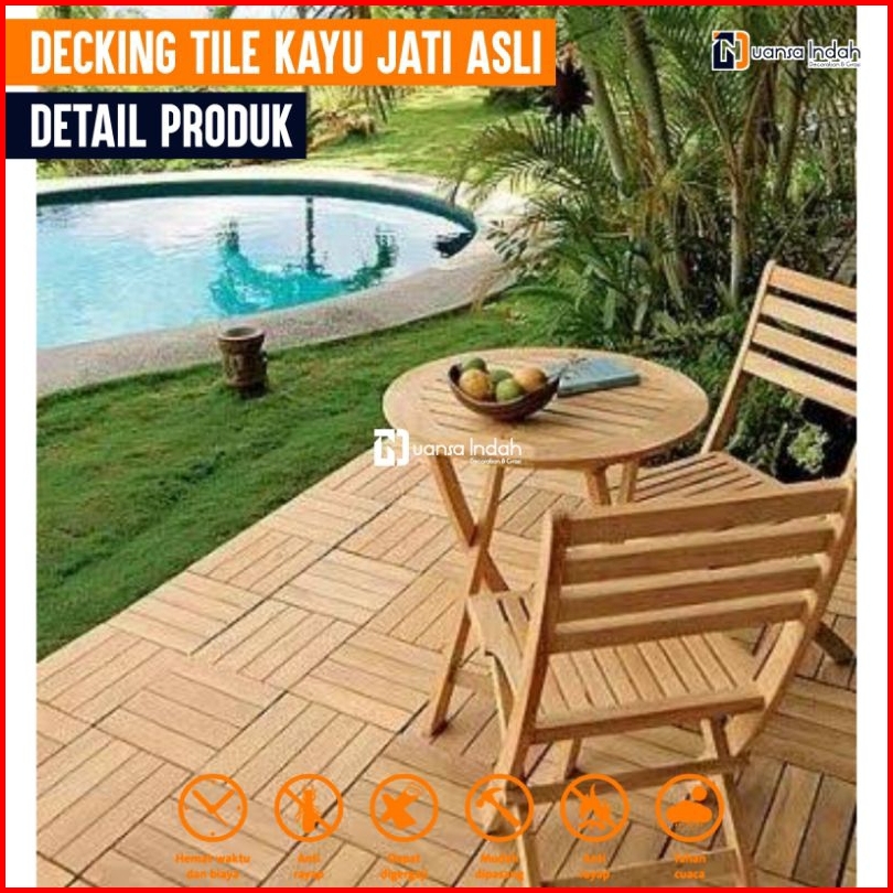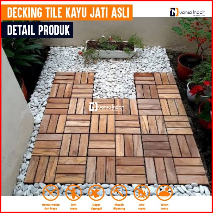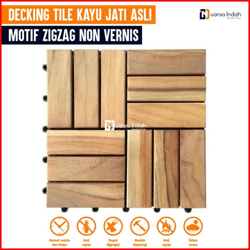 Decking Tile Kayu Jati Asli Motif Zigzag Non Finishing