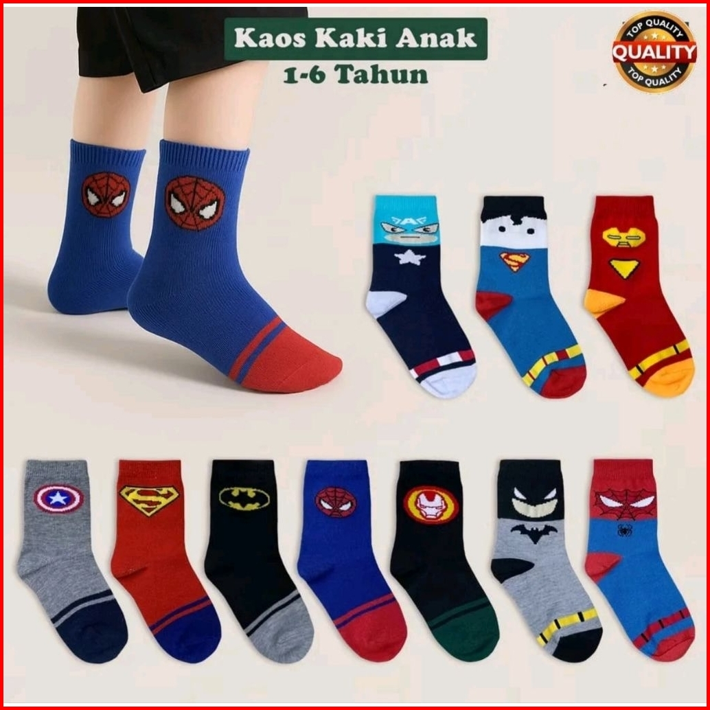 Fashion Sock 5 Pasang Kaos Kaki Anak Motif Karakter Superhero Terbaru Untuk Tk Paud Dan Sd 4-12 Tahun Cewek Cowok