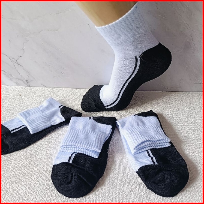 12 Pasang Kaus Kaki Pendek Anak Sekolah Ukuran Sd Smp Dan Sma Hitam Putih Katun Spandek Tebal Lembut Dan Nyaman