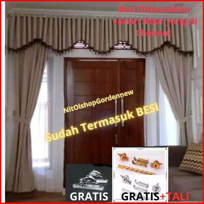 1 Sett Gorden Poni M Batang Gorden Set Gorden Pintu Tengah Ruang Tamu Lengkap Dengan Pipanya Gorden Jendela Mewah Korden