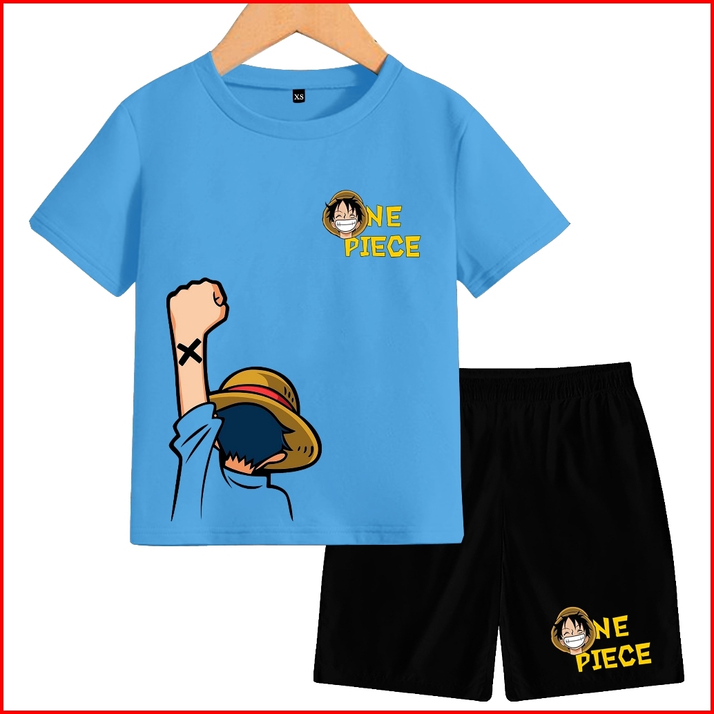 Setelan Anak-anak Monkey D. Luffy One Piece Lengan Pendek Bisa Buat Anak Umur 1-13thn