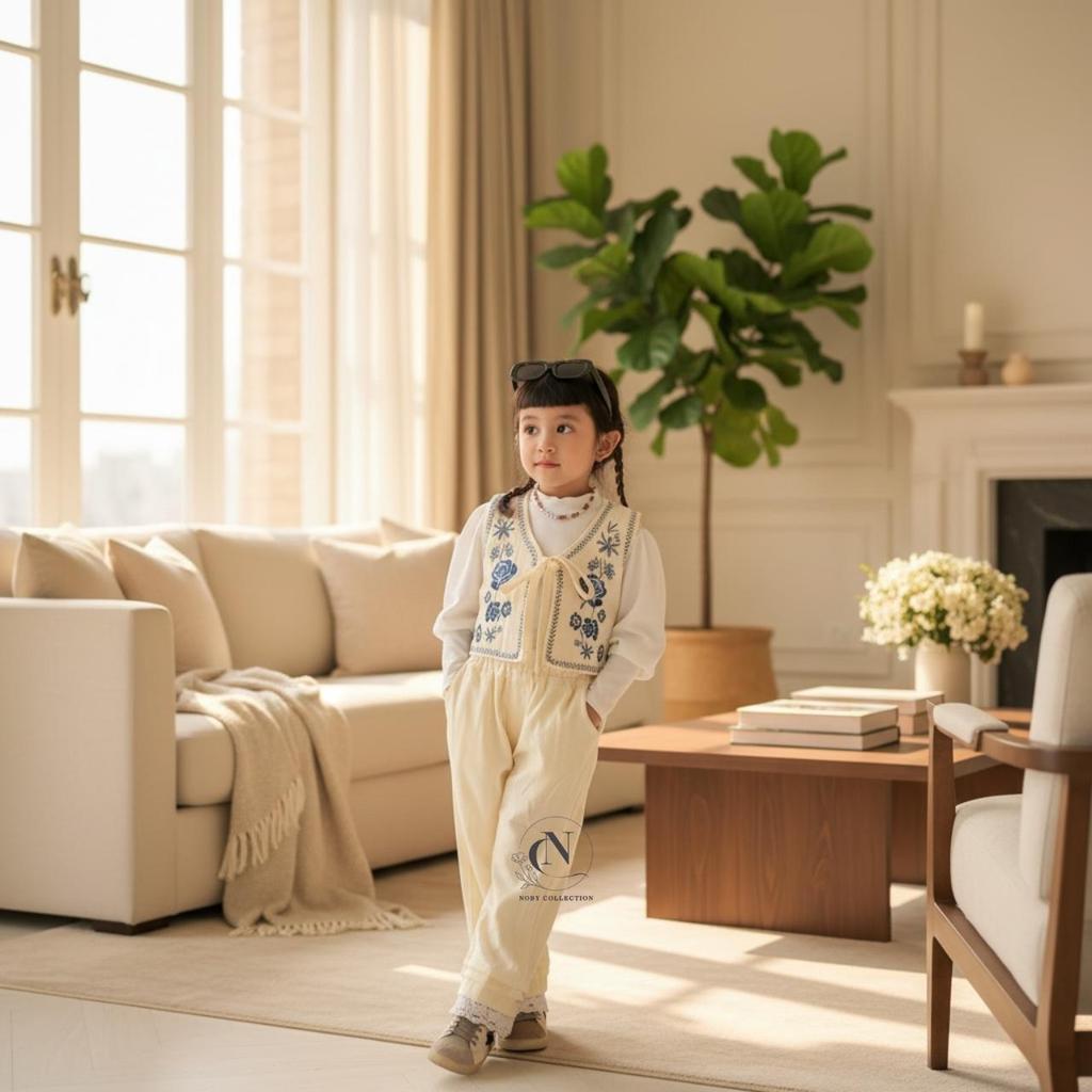 Haruka Setelan Celana Anak Perempuan 3In1 Vest Bordir Zr Bahan Jeans Gray Modis & Nyaman Untuk Tampil Stylish