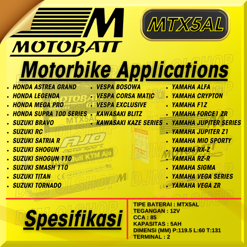 Aki Kering Motobatt MTX5AL Mio Sporty / Jupiter MX Old