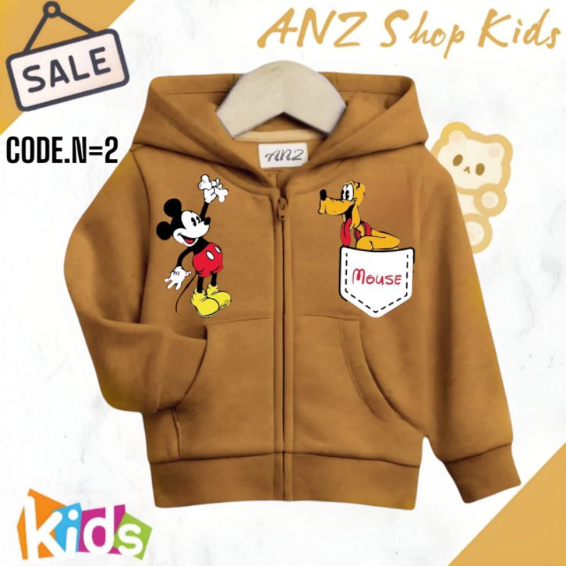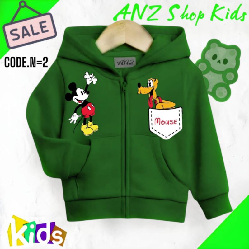 Jaket Zipper Anak Medel Baru Mouse Unisex 2-11 Thn