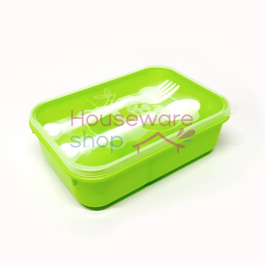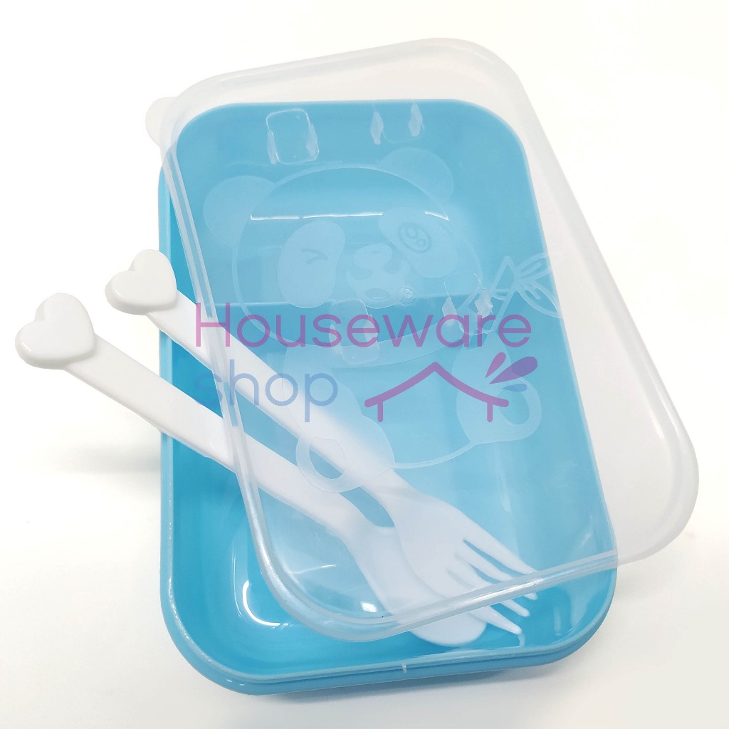 [LUSIN] Set 12 Pcs Lunch Box Segi Panda Sekat 2 - Free Sendok Garpu / Tempat Makan Wadah Bekal Anak Food Grade - Souveni