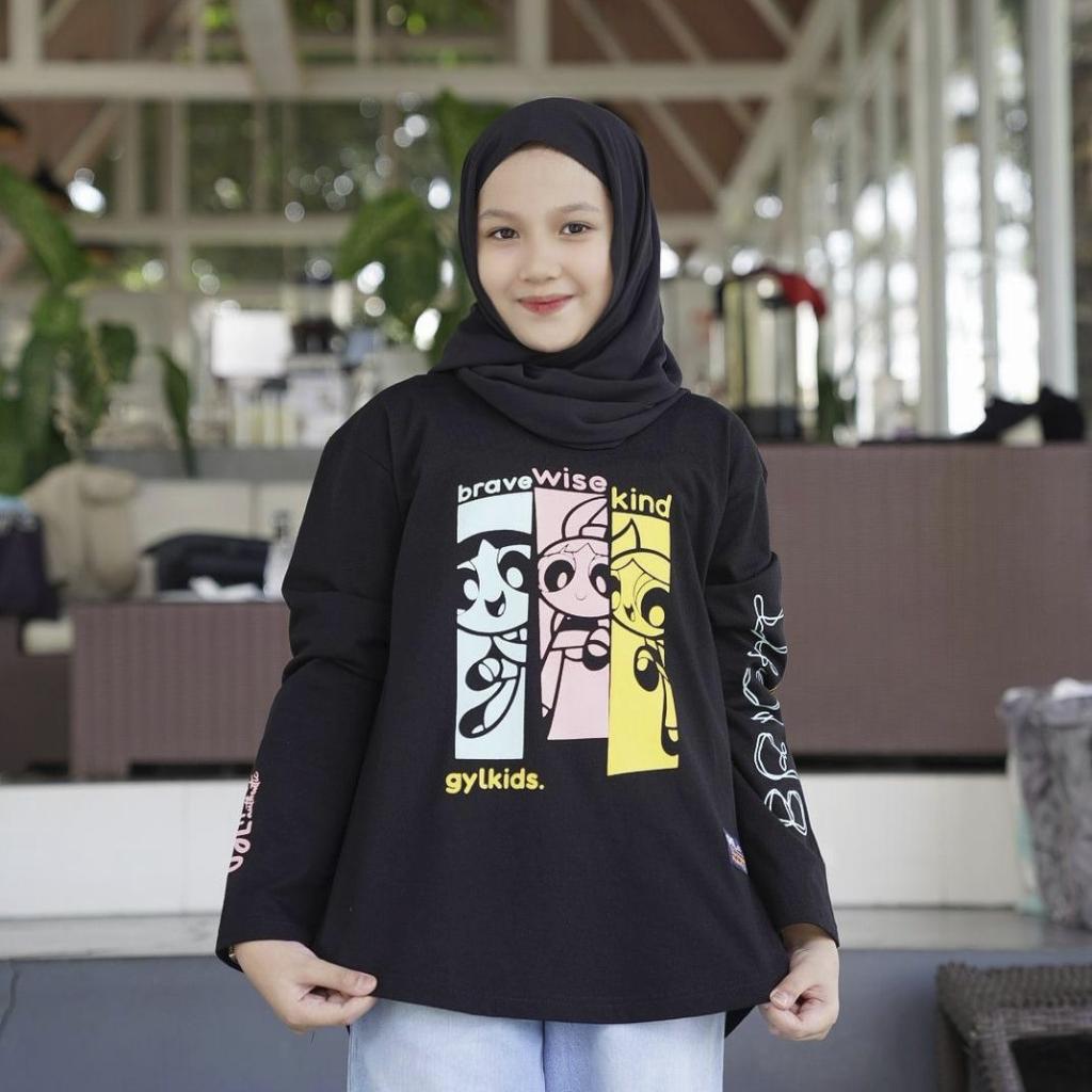 Gylkids Top Oval Kaos Anak Perempuan Bahan Cotton Combed 20S Usia 5-14 Tahun