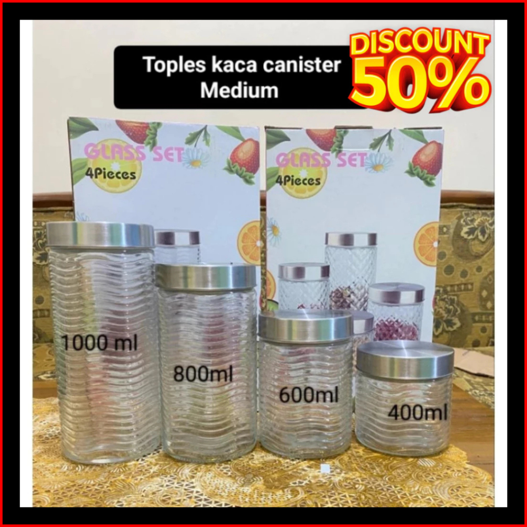 Toples Kaca Medium Set 4 In 1 Toples Kue Lebaran Elegant Mewah