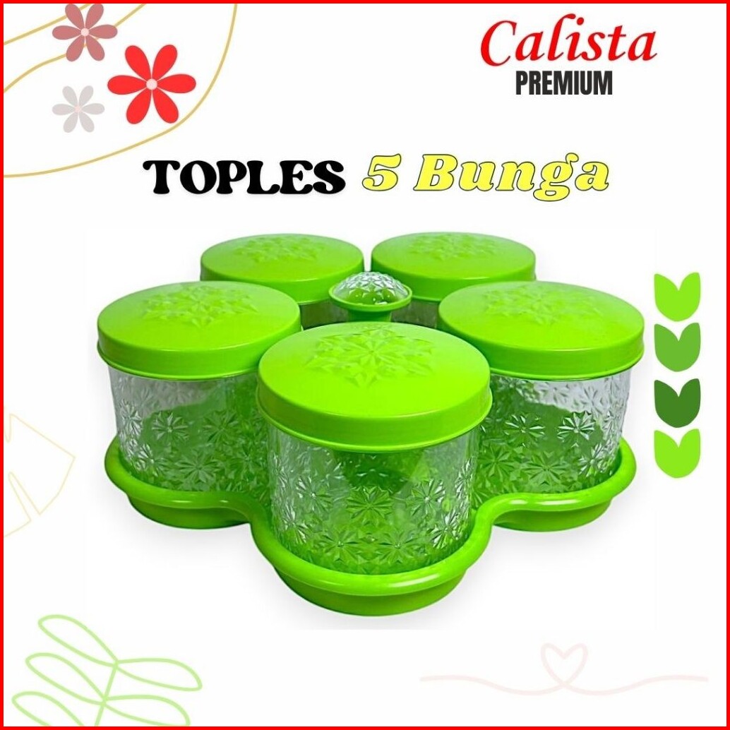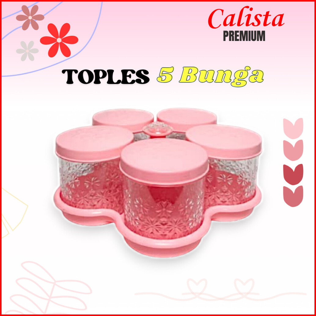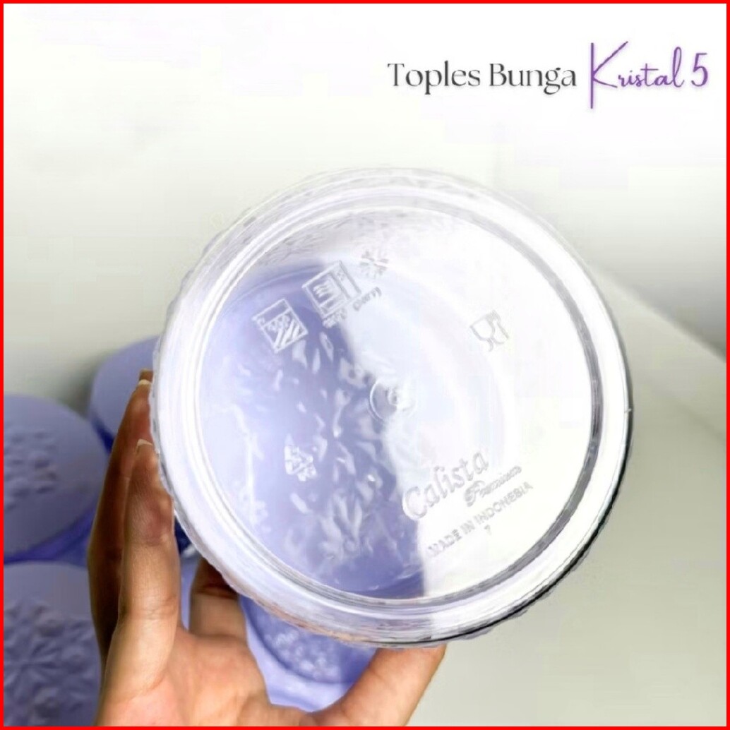 Toples Calista Bunga Kristal Set 5 Gratis Nampan Toples Lebaran Kedap Premium Cantik Mewah