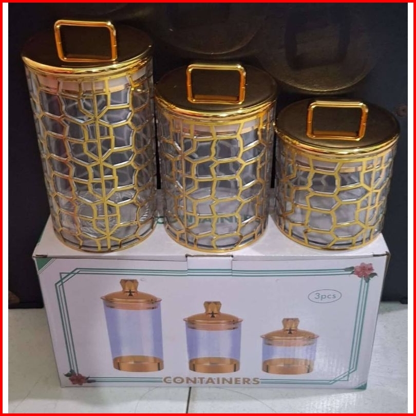 Toples Akrilik 1 Set 3pcs Toples Lebaran Sultan Mewah Kekinian Hampers Idul Fitri