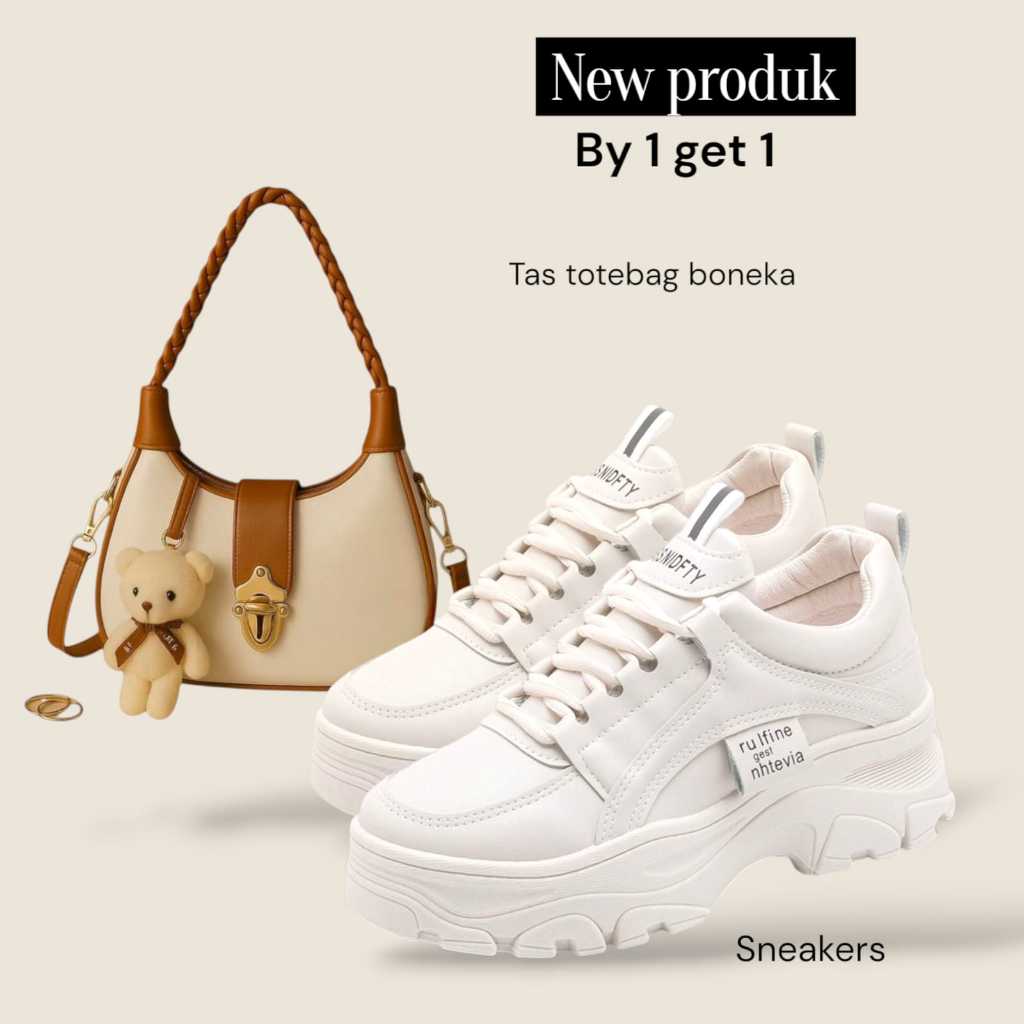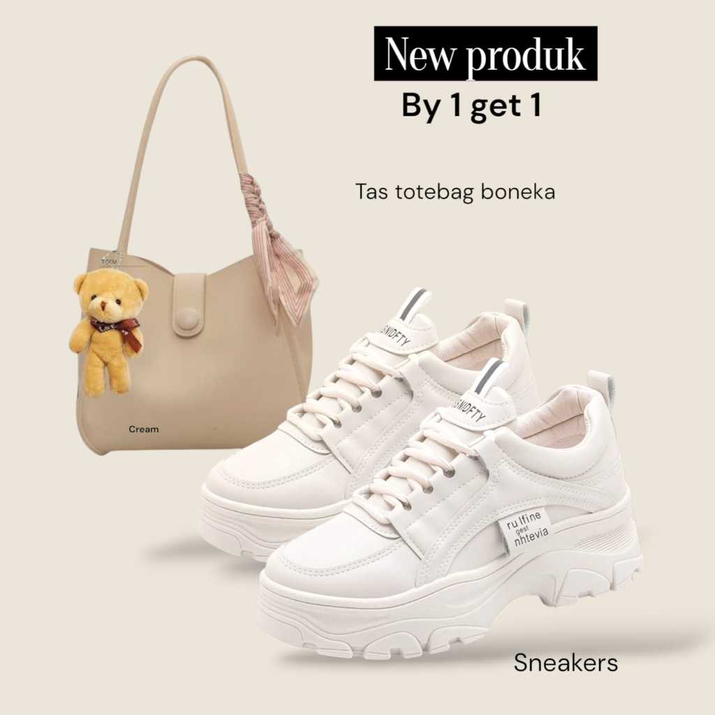Paket hemat 2set sepatu sneakers Casual Shoes wanita+tas wanita slempang bonpita plus boneka Murah Gratis Ongkir