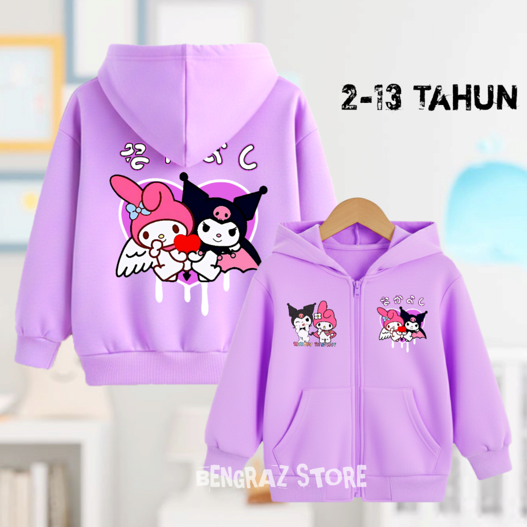 Jaket Resleting Zipper Anak Perempuan Kuromi Melody Hoodie Sweater Anak Cewek Usia 2 Sampai 13 Tahun
