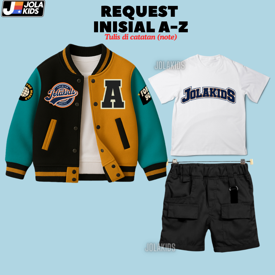 Jolakids Special Bundling Jaket Baseball Inisial + Stelan Baju Anak 2 - 12 Tahun