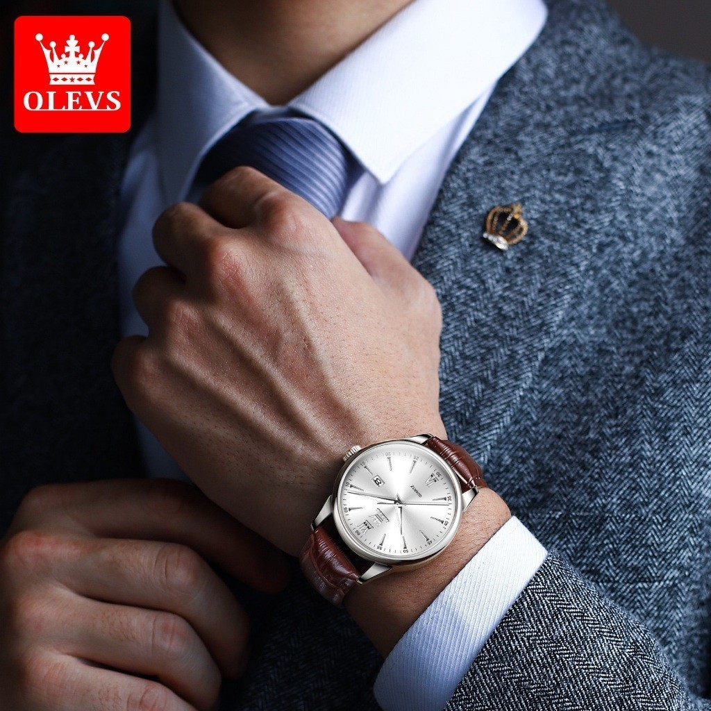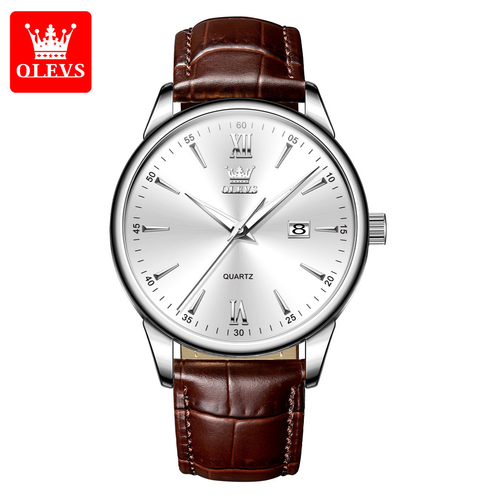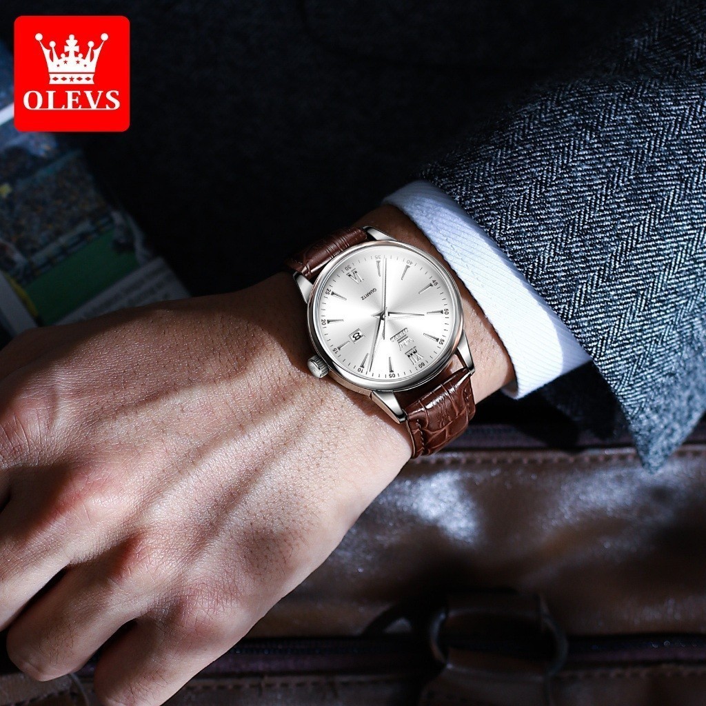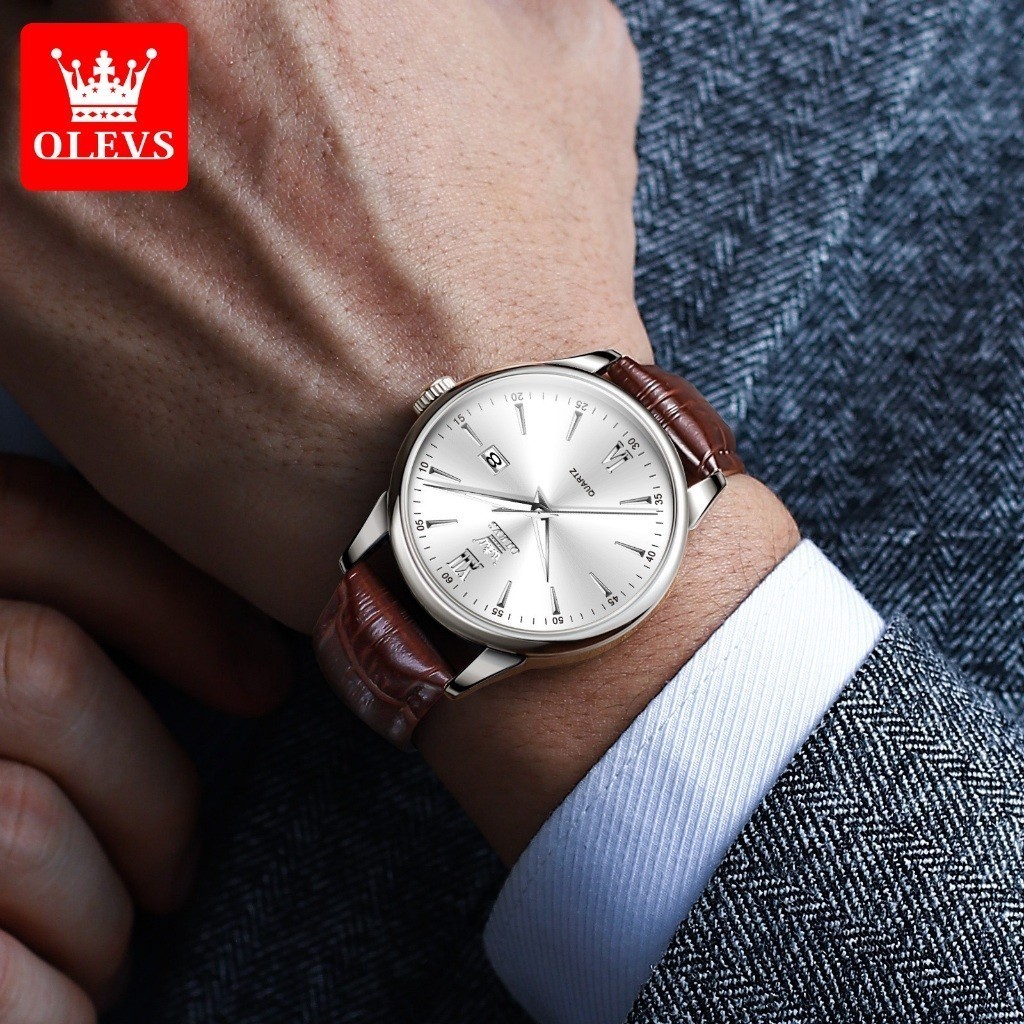 OLEVS Jam Tangan Pria Anti Air Kulit Strap Cowok Arloji Original Analog Quartz Sporty Mewah 5009