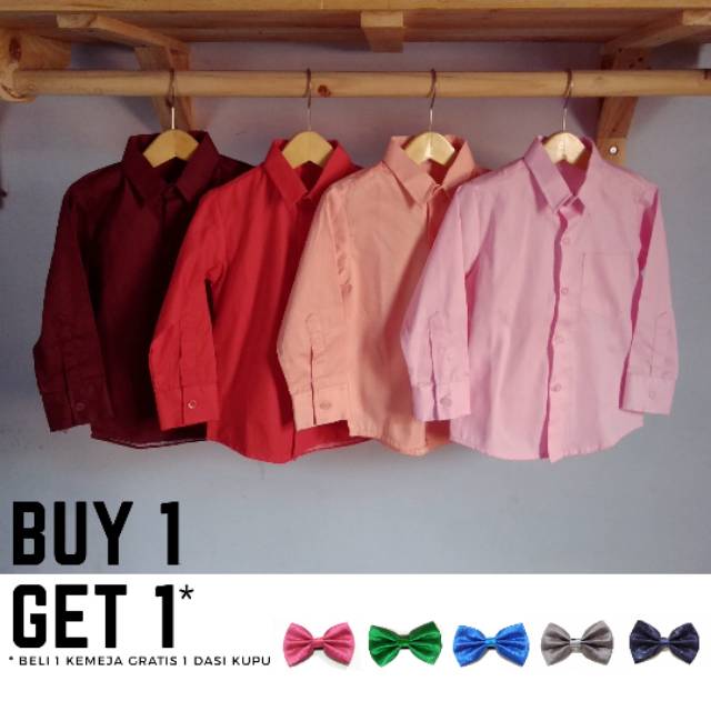 Kemeja Anak Lengan Panjang Maroon Merah Salem Pink