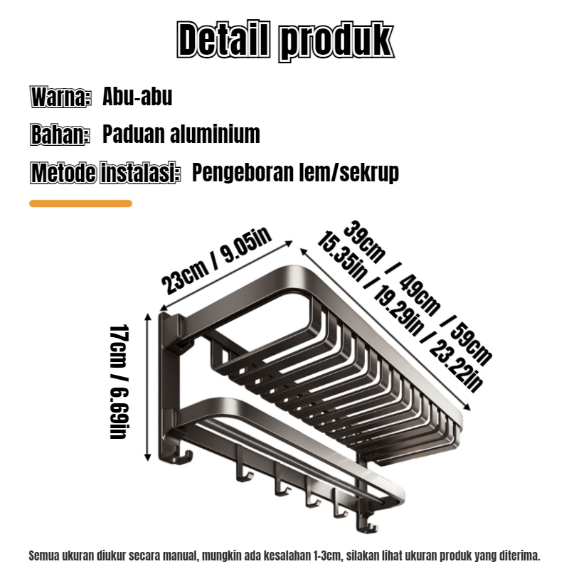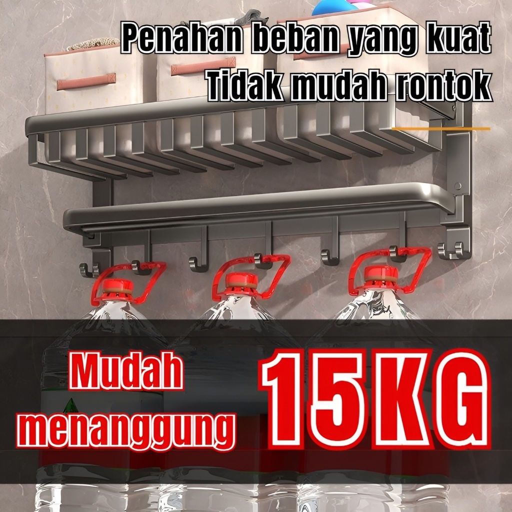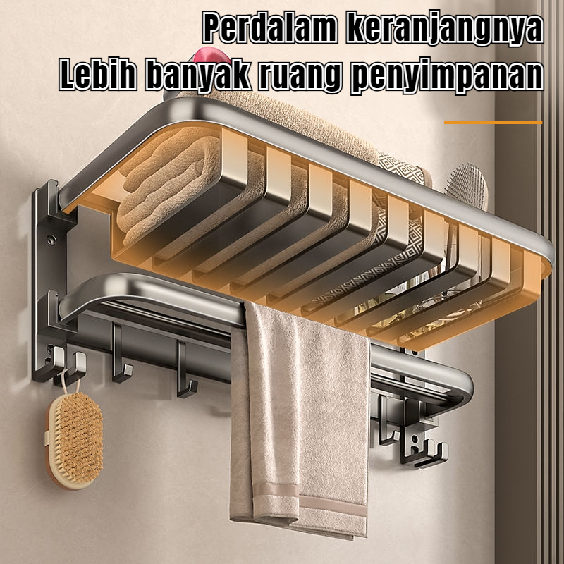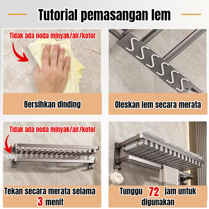 RASION Kamar Mandi Aluminium Rak Handuk Tahan Air Tidak Perlu Pengeboran Abu-abu Pencegahan Karat Dudukan Dinding Yang Kokoh Dan Tahan Lama