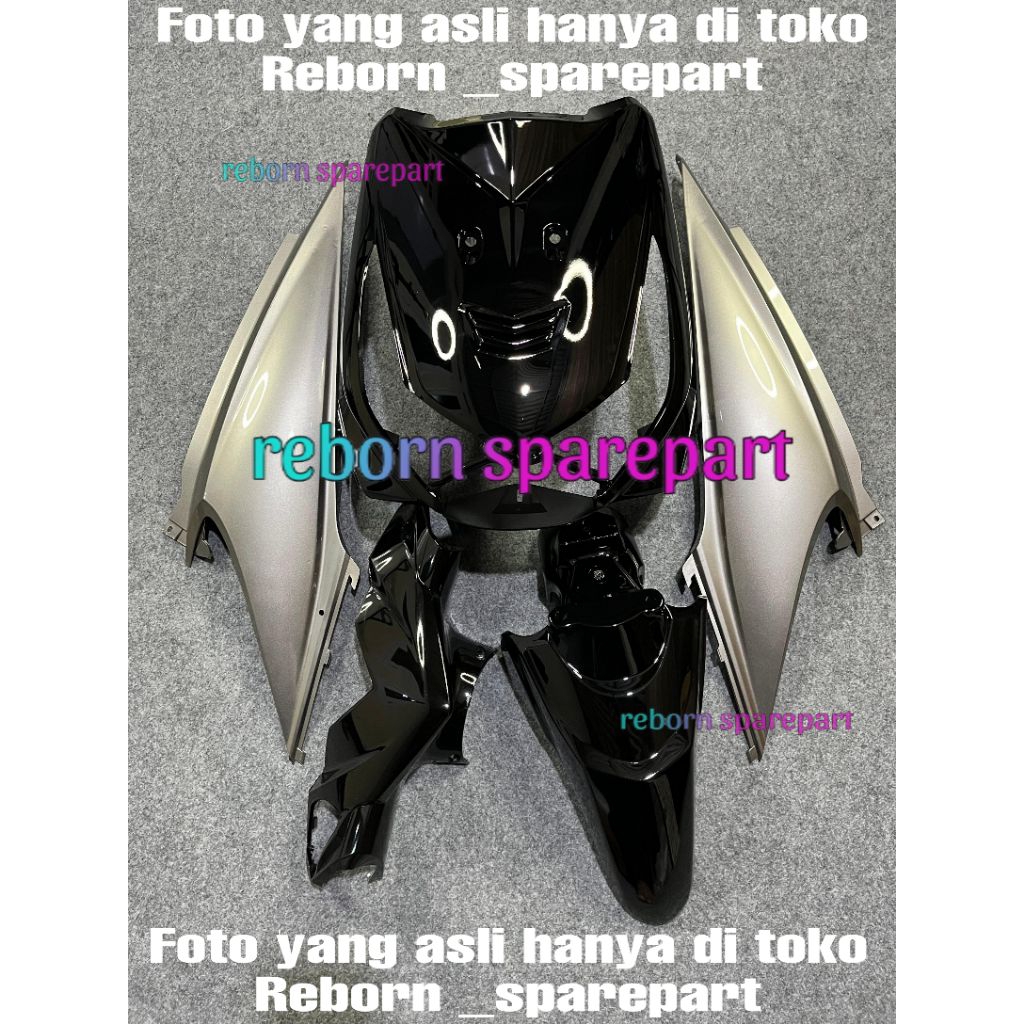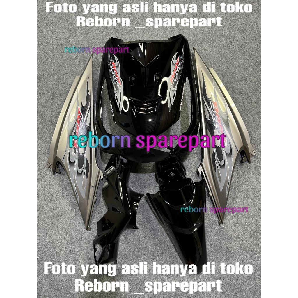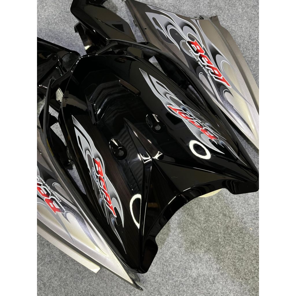 cover full body halus Honda beat karbu 2008-2012 hitam mix grey plus stripping api transparan - body beat karbu hitam 2008-2012