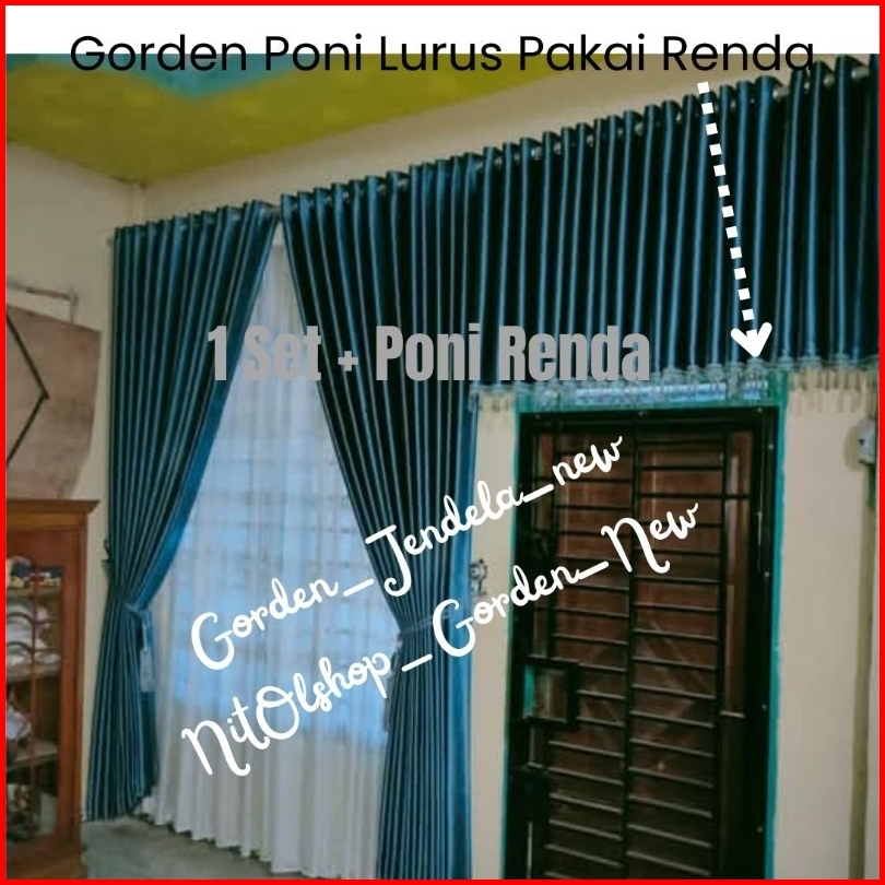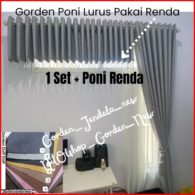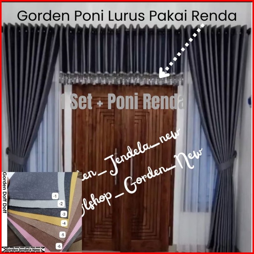 1 Paket Gorden Blackout Doff Dan Poni Renda Kristal Satu Set