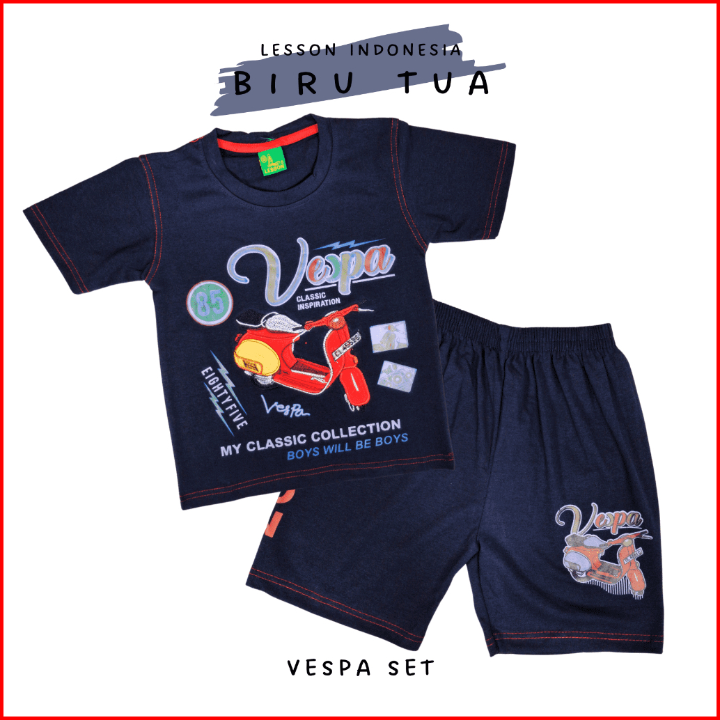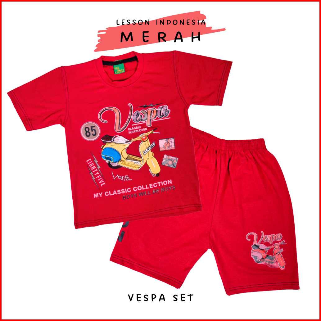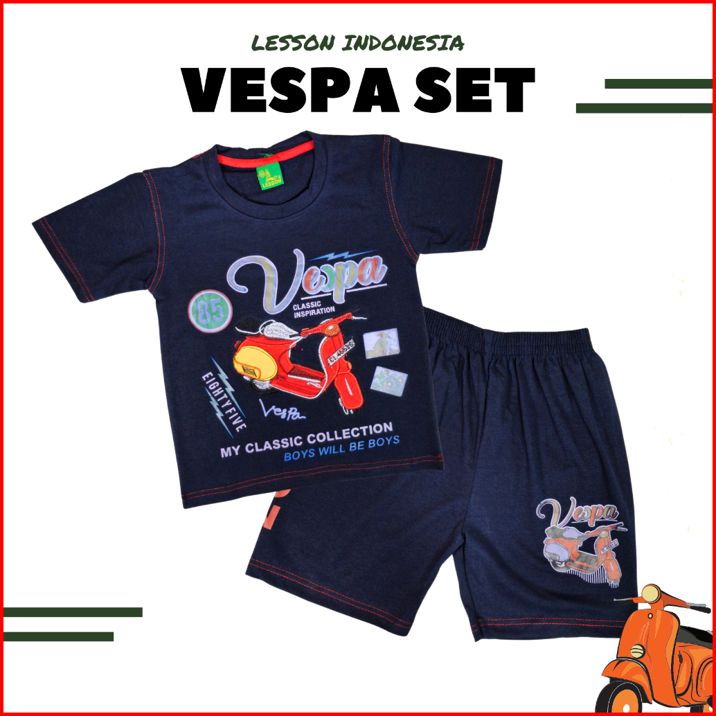 Setelan Anak Laki Laki Kaos Motif Motor Vespa Lesson