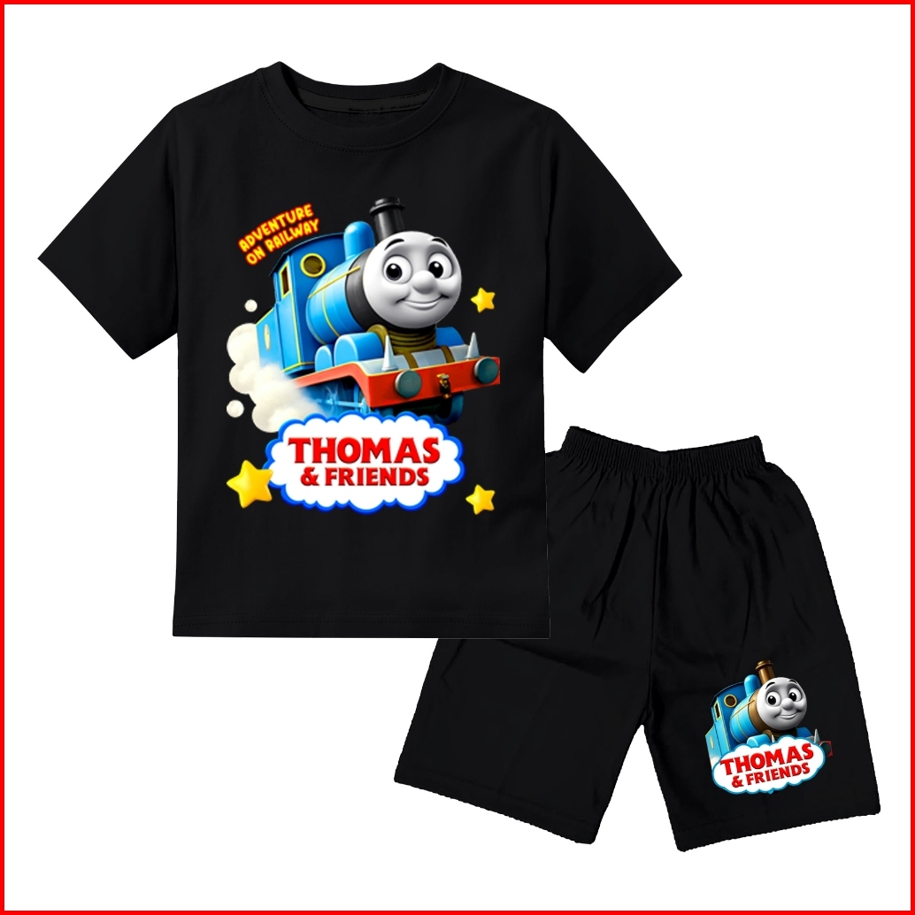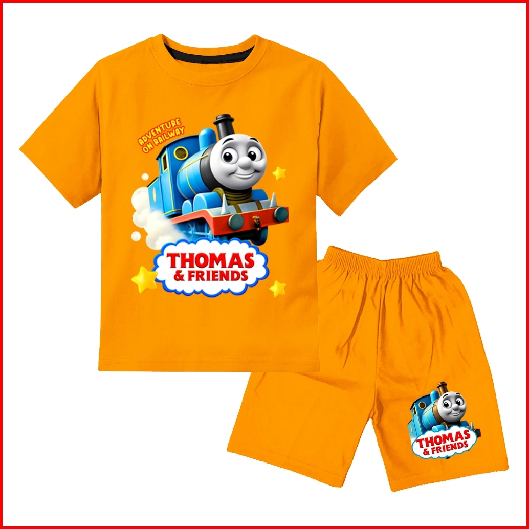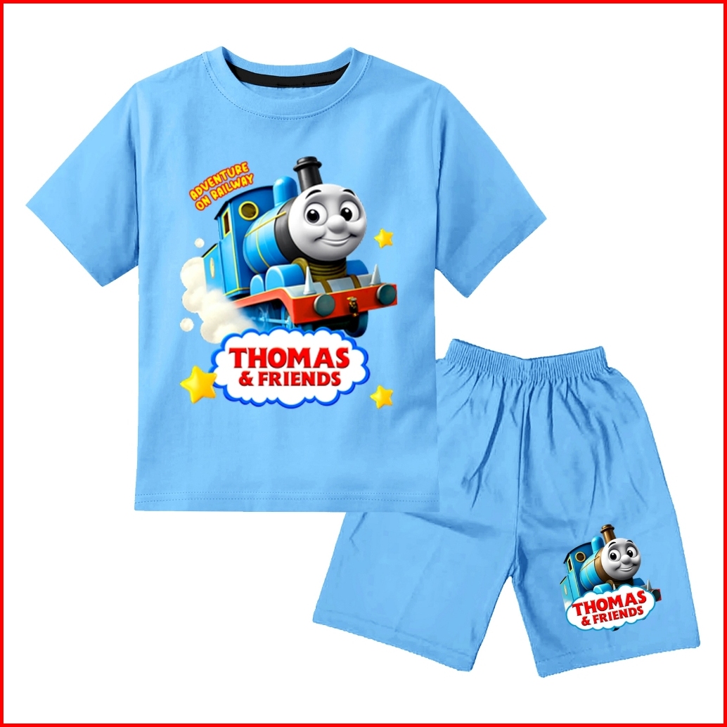 Baju Set Stelan Setelan Kaos Anak Laki Laki Murah Motif Thomas Umur 1-10 Tahun Bahan Katun Premium Sablon Dtf