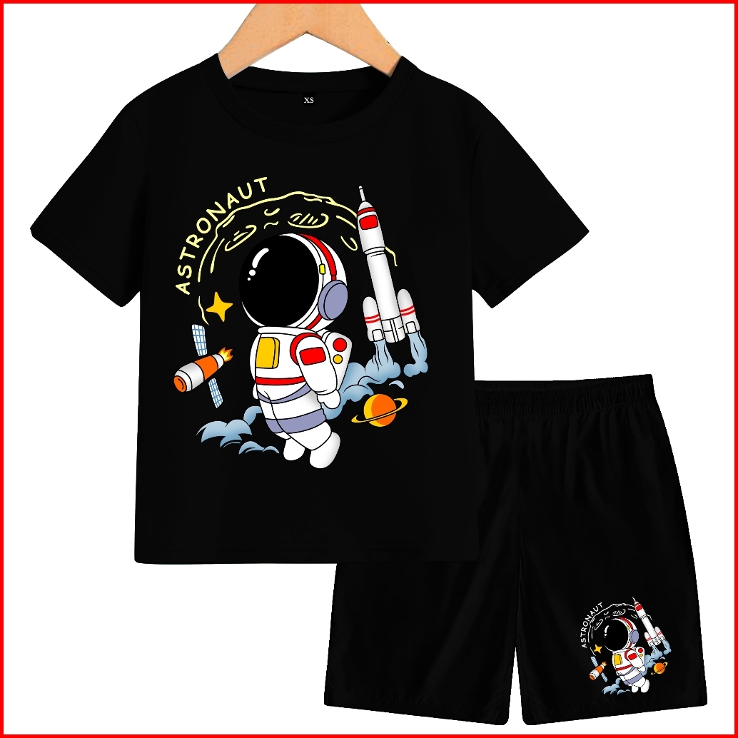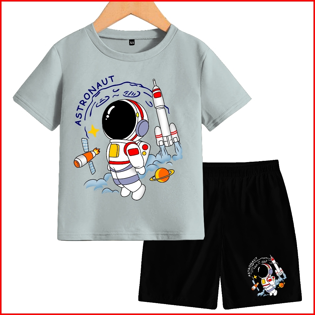 Setelan Anak Anak Motif Astronaut Lengan Pendek