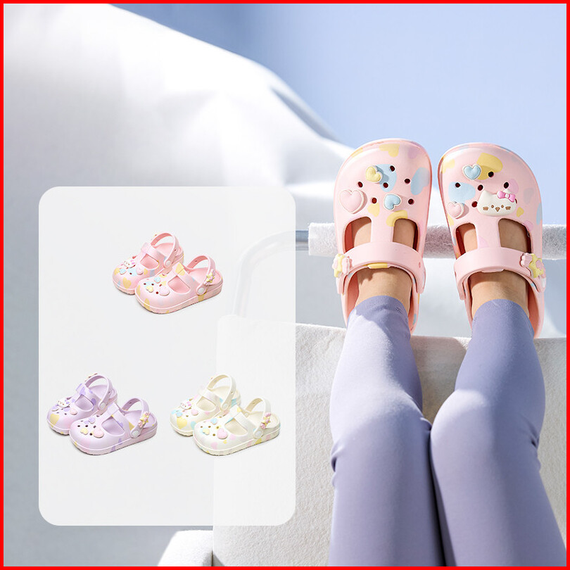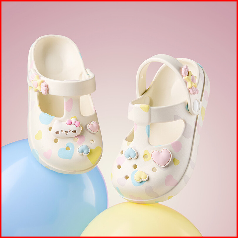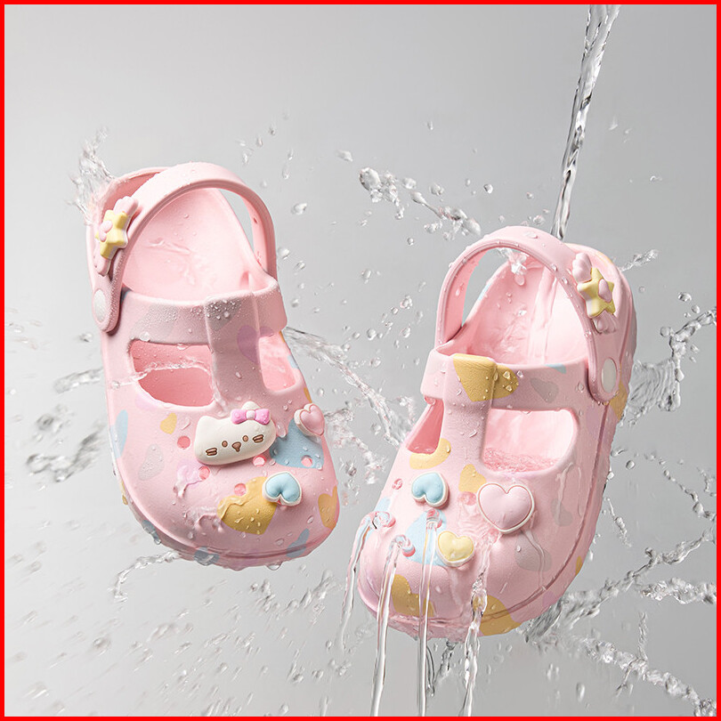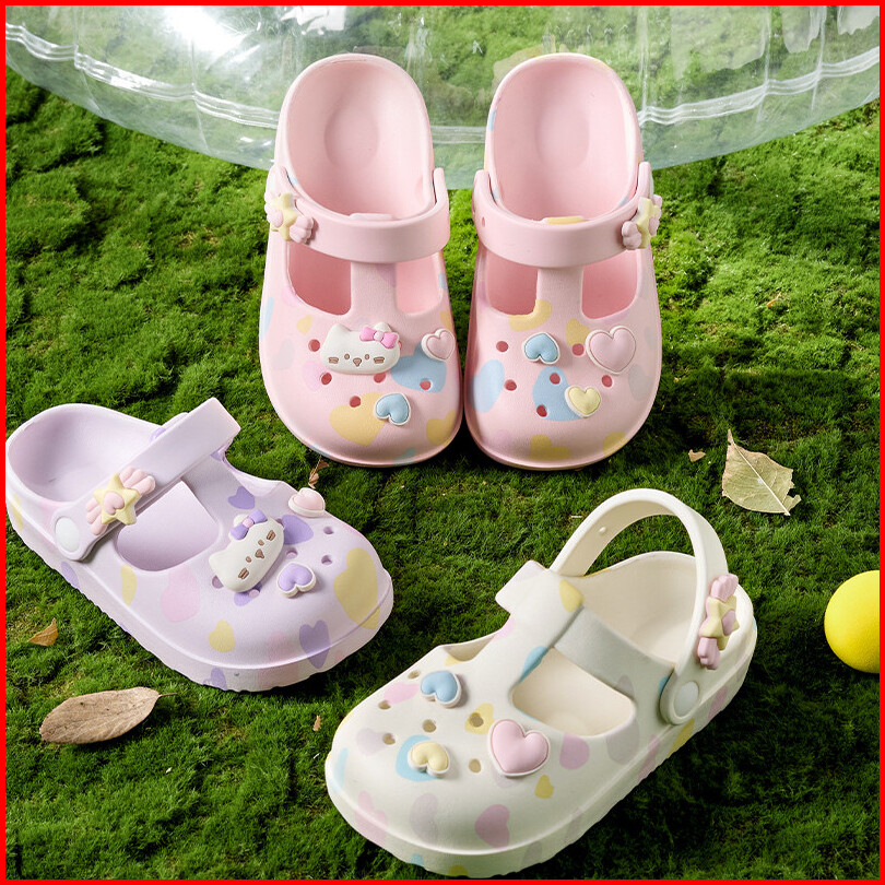 Cheerful Mario 4-12 Tahun Sandal Anak Perempuan Tali Belakang Kitty Cat Cinta Jibbitz Sandal Crop Anak Cewek Kekinian Pe