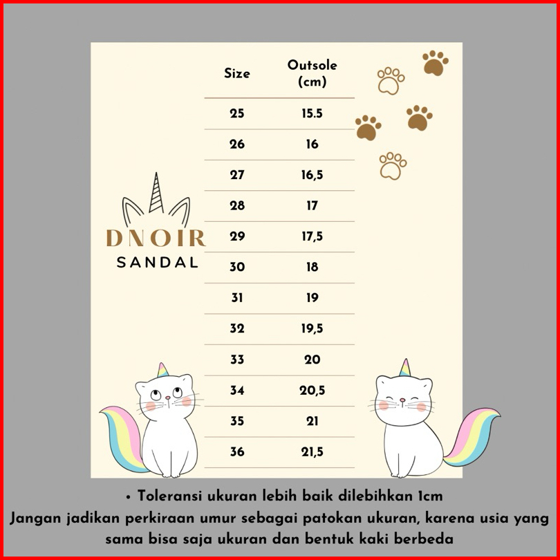 Dnoir Sandal Jepit Anak Perempuan Unicorn Cat Size 25 - 36