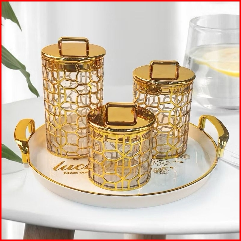 Toples Sultan Set Isi 3 - Toples Kue Mewah Acrylic Stoples Canister 3in1 Toples Lebaran Tempat Kue Cantik Ks