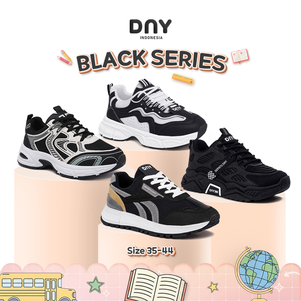 Sepatu DNY Black Shoes Wanita Sepatu anak Sekolah Sneakers Hitam Cewek ala Korean BTS002 Murah Gratis Ongkir