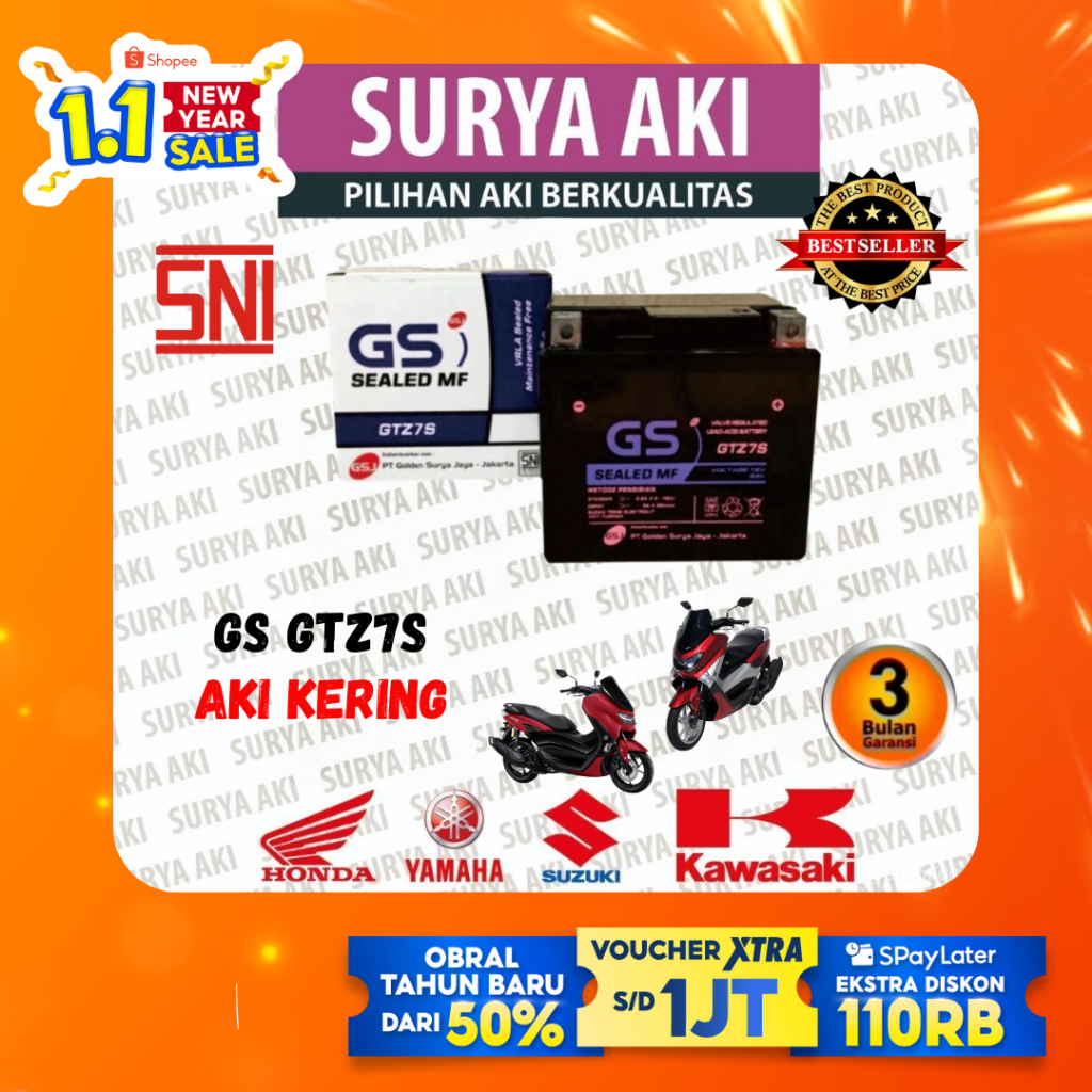 Aki Motor GTZ7S Accu Kering MF VARIO 125/150 BEAT SCOOPY ISS CB150R NMAX SATRIA FU - Free Bubble Dus