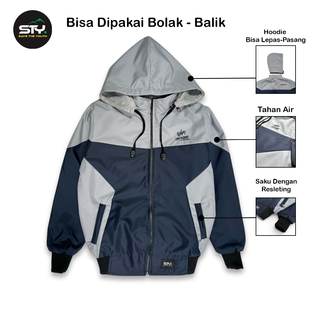 Jaket Parasut Anak Laki Laki Anti Air Bisa Dipakai Bolak Balik Abu Muda Usia 3-14 Tahun Terbaru