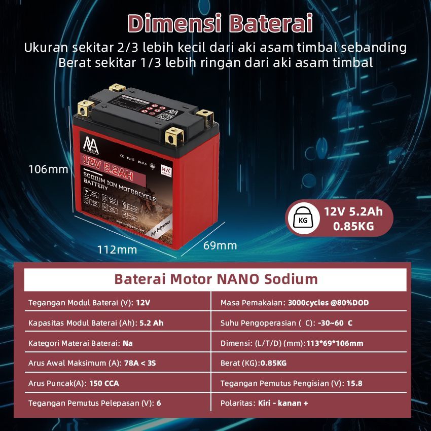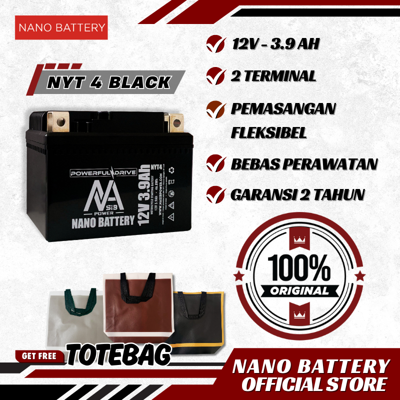NANO BATTERY Aki Motor Sodium Ion 12.4V 3.9Ah Aki Motor NYT4 BLACK 12.4V3.9Ah Aki Kering Garansi Resmi Dari Pabrik Sendiri
