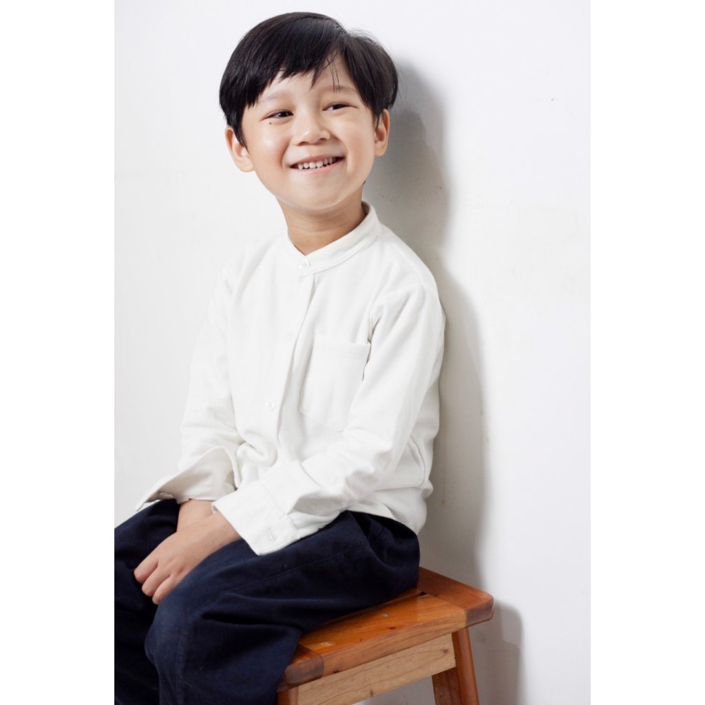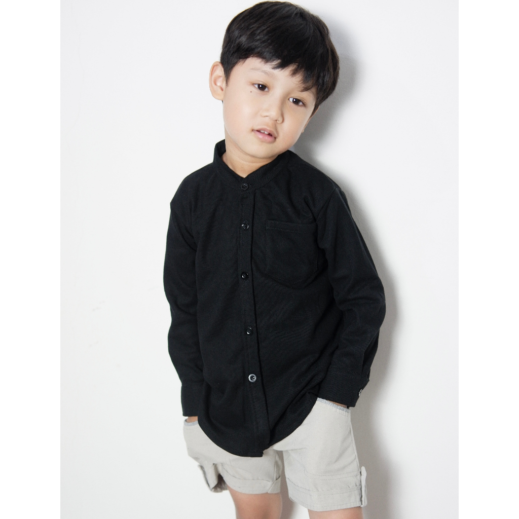 Kemeja Anak Cowok Usia 1-12 Tahun Polos Kerah Chiangi Lengan Panjang