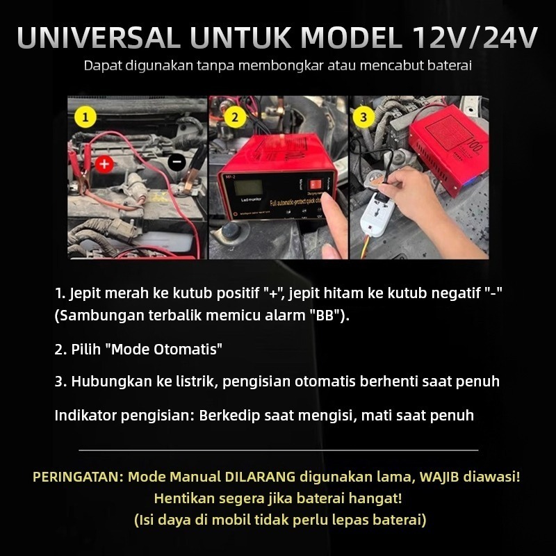 ANTETSI Charger Aki 12V/24V 1500A Otomatis untuk Accu Kering dan Basah Lead Acid - Alat Cas Aki Motor dan Mobil dengan Indikator Listrik.