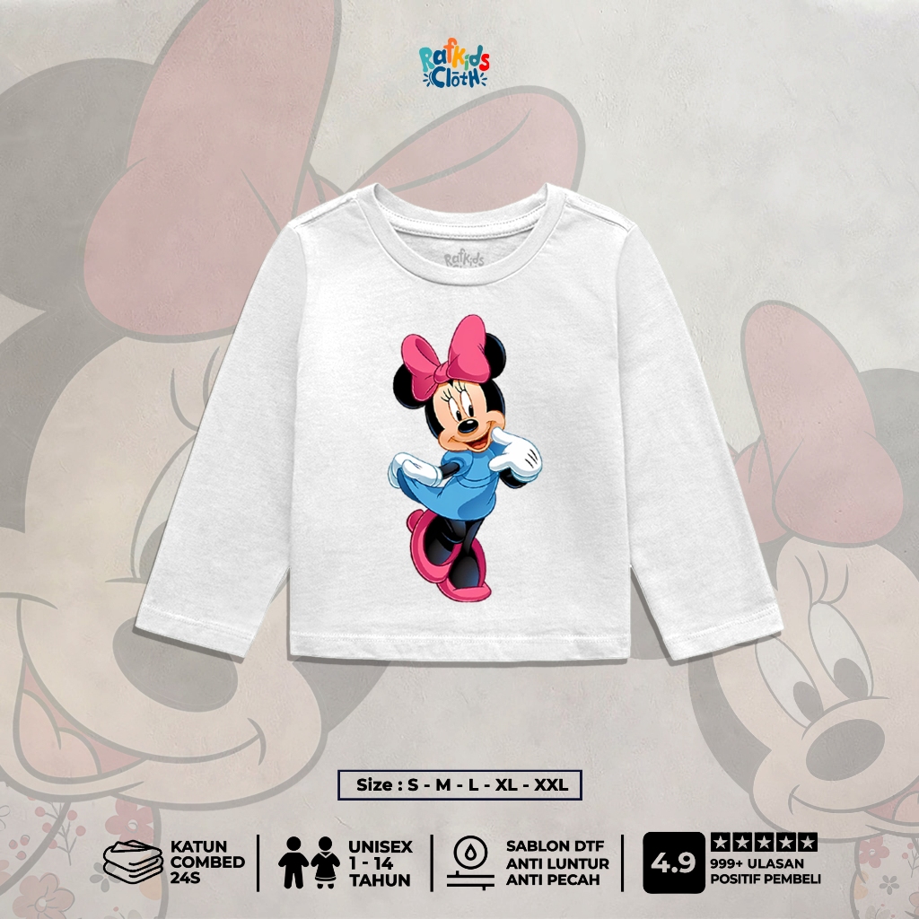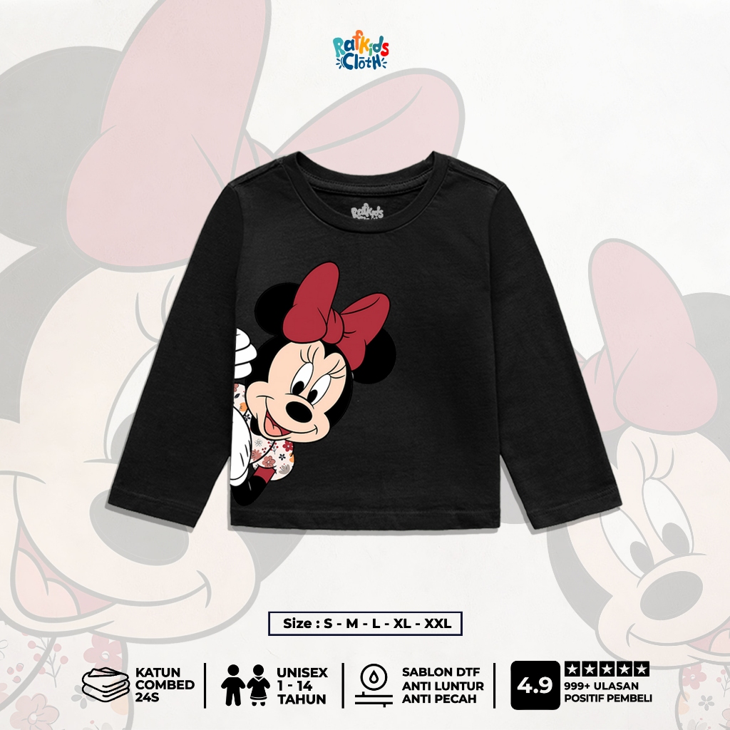 Kaos Anak Lengan Panjang Umur 1 - 12 Tahun Baju Atasan Motif Mini Mouse Bahan Adem Nyaman Combed 24S