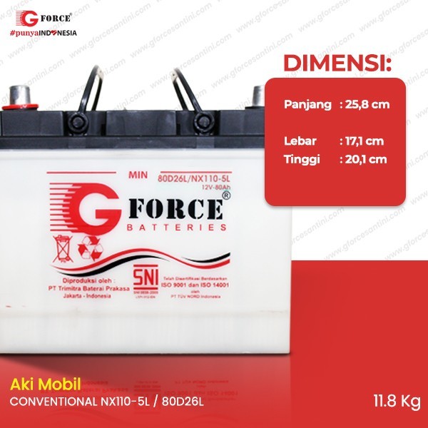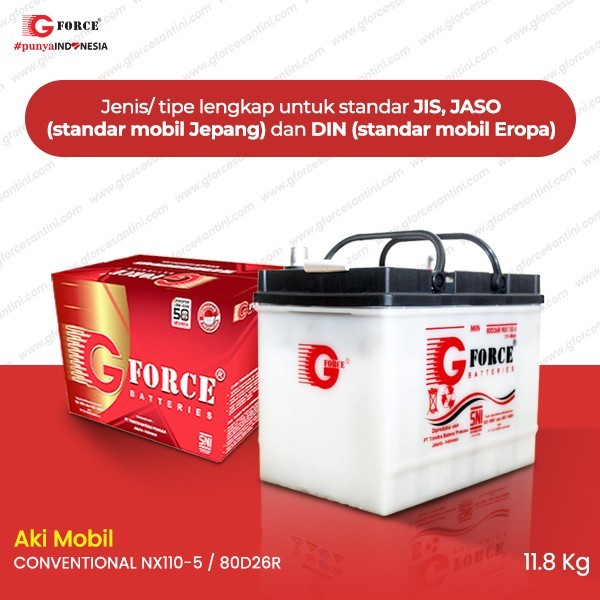 GFORCE NX110-5 - 80D26R / NX110-5L - 80D26L (80 Ampere) - Aki Mobil