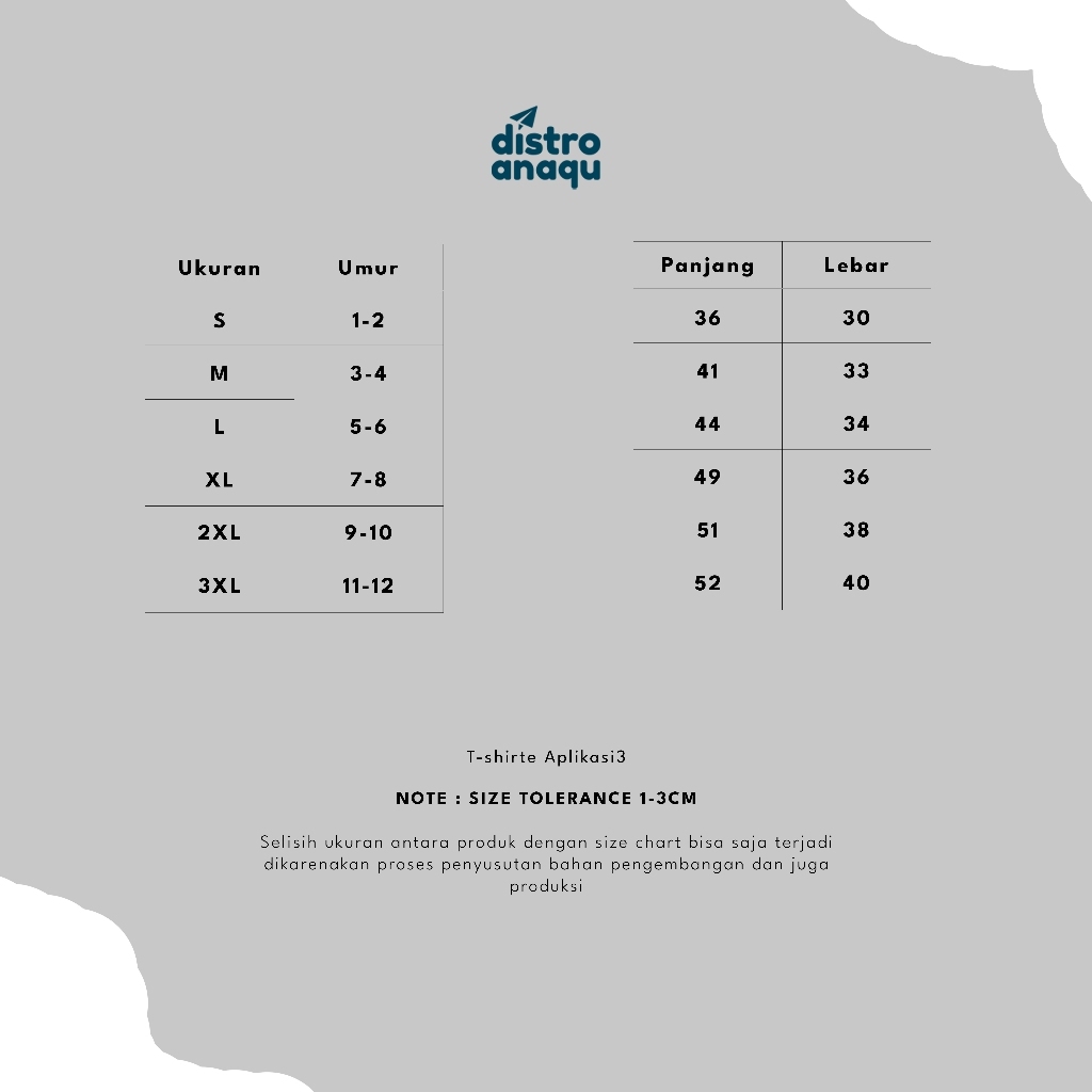 Kaos Distro Anak Laki Laki Perempuan Model Aplikasi Umur 1-12 Tahun Bahan Katun 30S