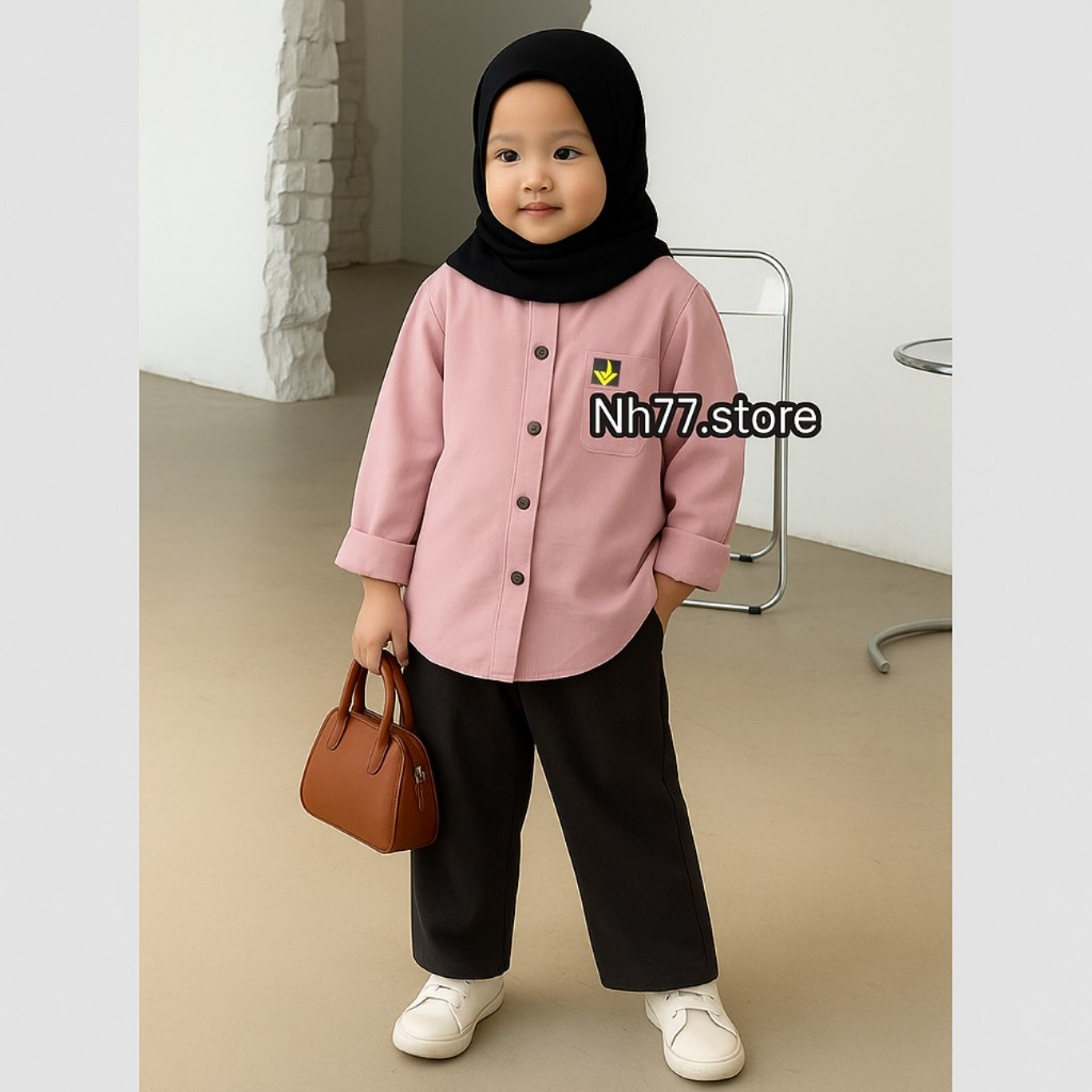 Kemeja Anak Perempuan Kualitas Premium Umur 2-13Th Lengan Panjang Warna Terbaru