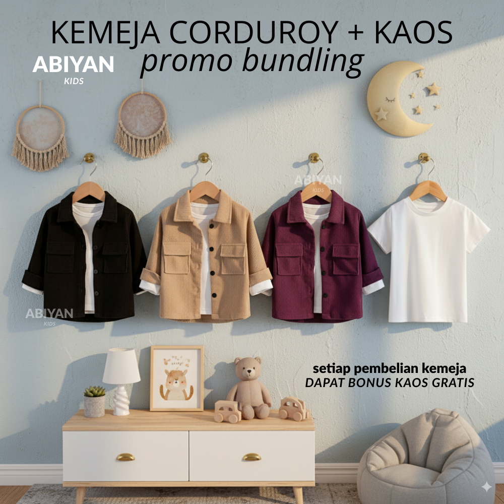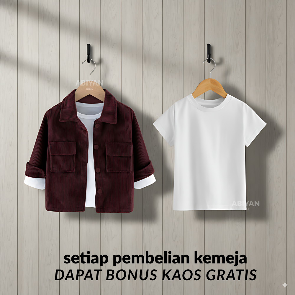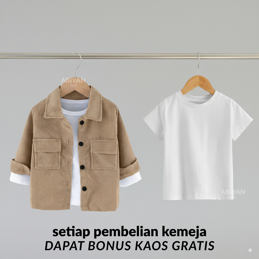 Kemeja Corduroy Bonus Kaos Anak Laki Laki Usia 1- 6 Tahun Populer