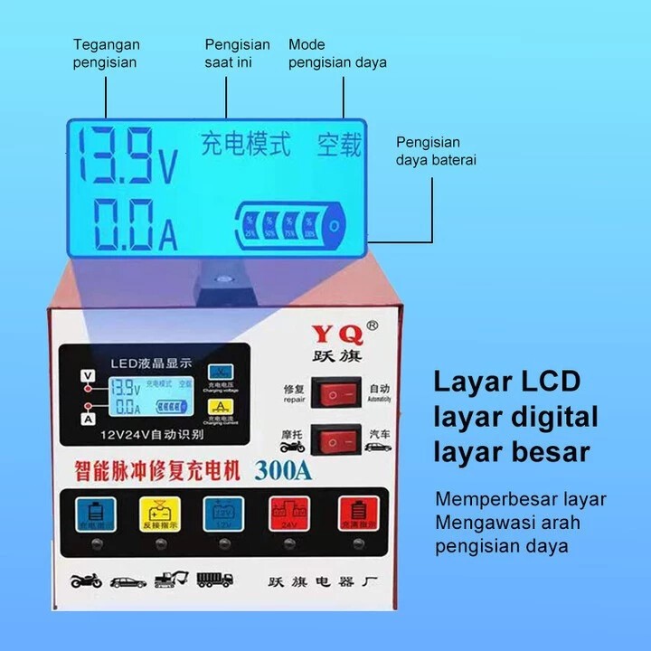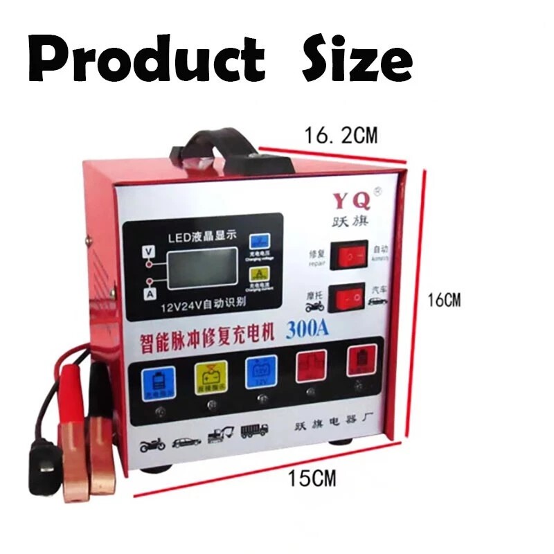 Charger Aki Otomatis Smart Intelligent 12V/24V 300A Otomatis Moto Memimpin Pengisi Daya Mobil Pengis