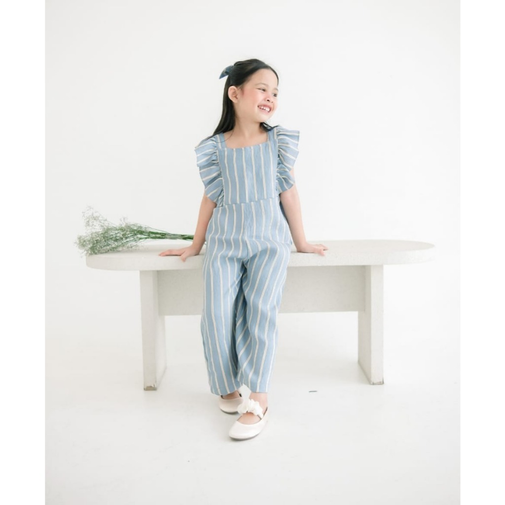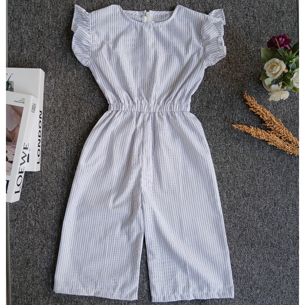 Kobe Jumpsuit Baju Anak Perempuan Jumpsuit Lengan Pendek Korean Style Fashionable Trendy Lengan Ruffle Motif Garis Usia 5 Tahun - 10 Tahun