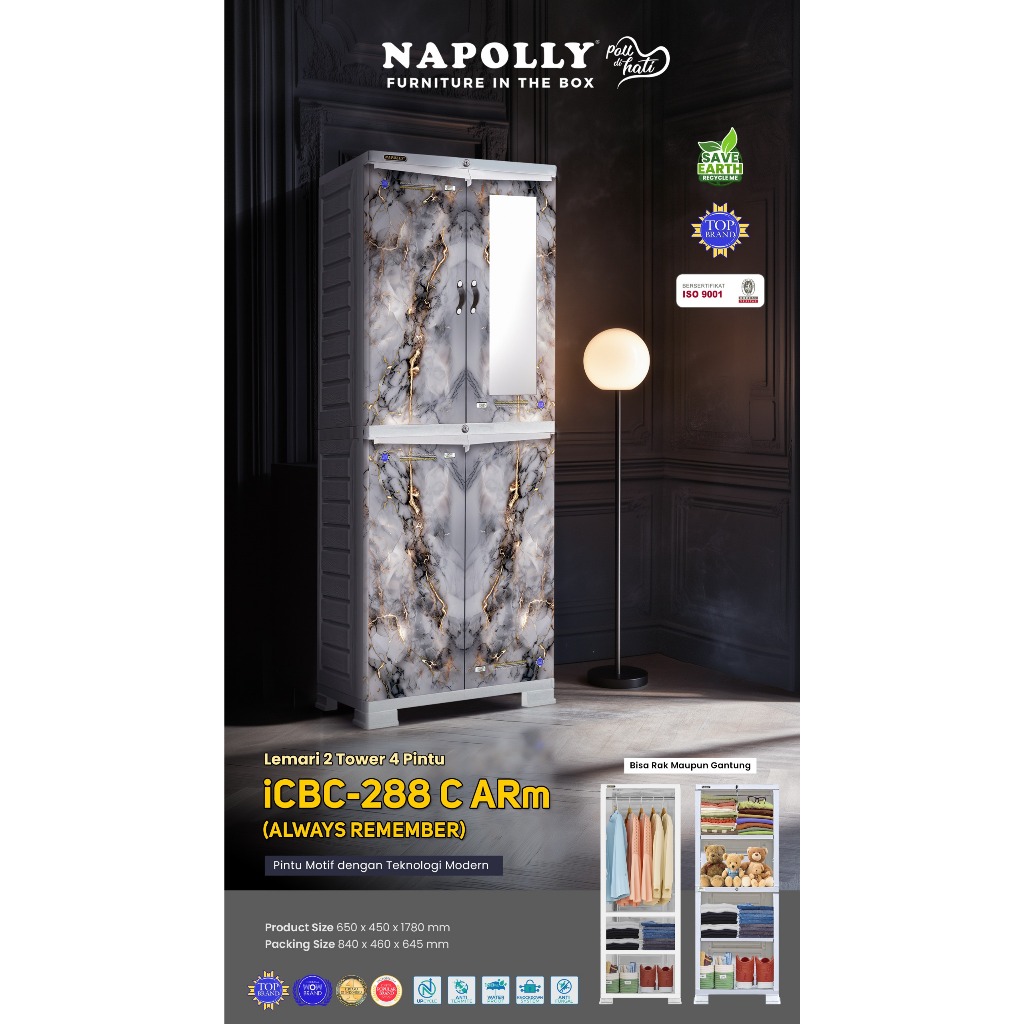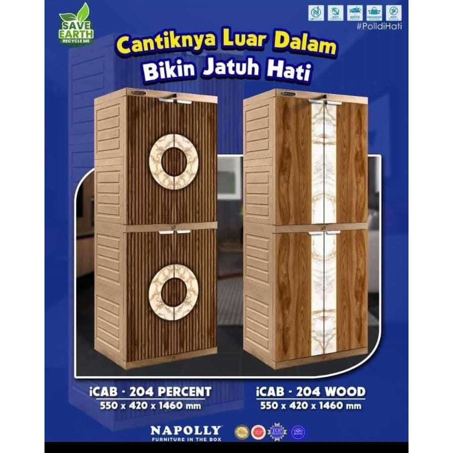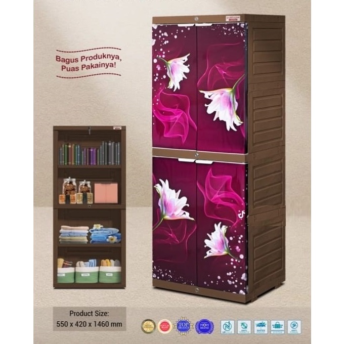 LEMARI PAKAIAN PLASTIK NAPOLLY 4 SUSUN MURAH KUAT TEBAL BUNGA UNGU ICAB 204 PTRON TEAK WOOD KUNCI