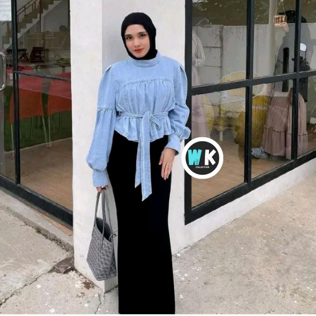 ATASAN CROP JEANS LENGAN BALON Murah Gratis Ongkir