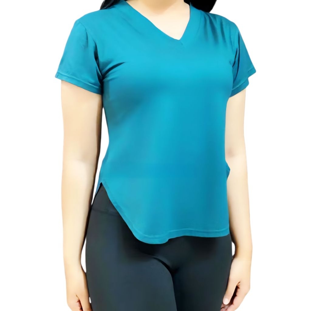 Sleeve Crop Top V-Neck Short Kaos Lengan Pendek Slit Oval Slim Fit Spandek Lembut Murah Gratis Ongkir